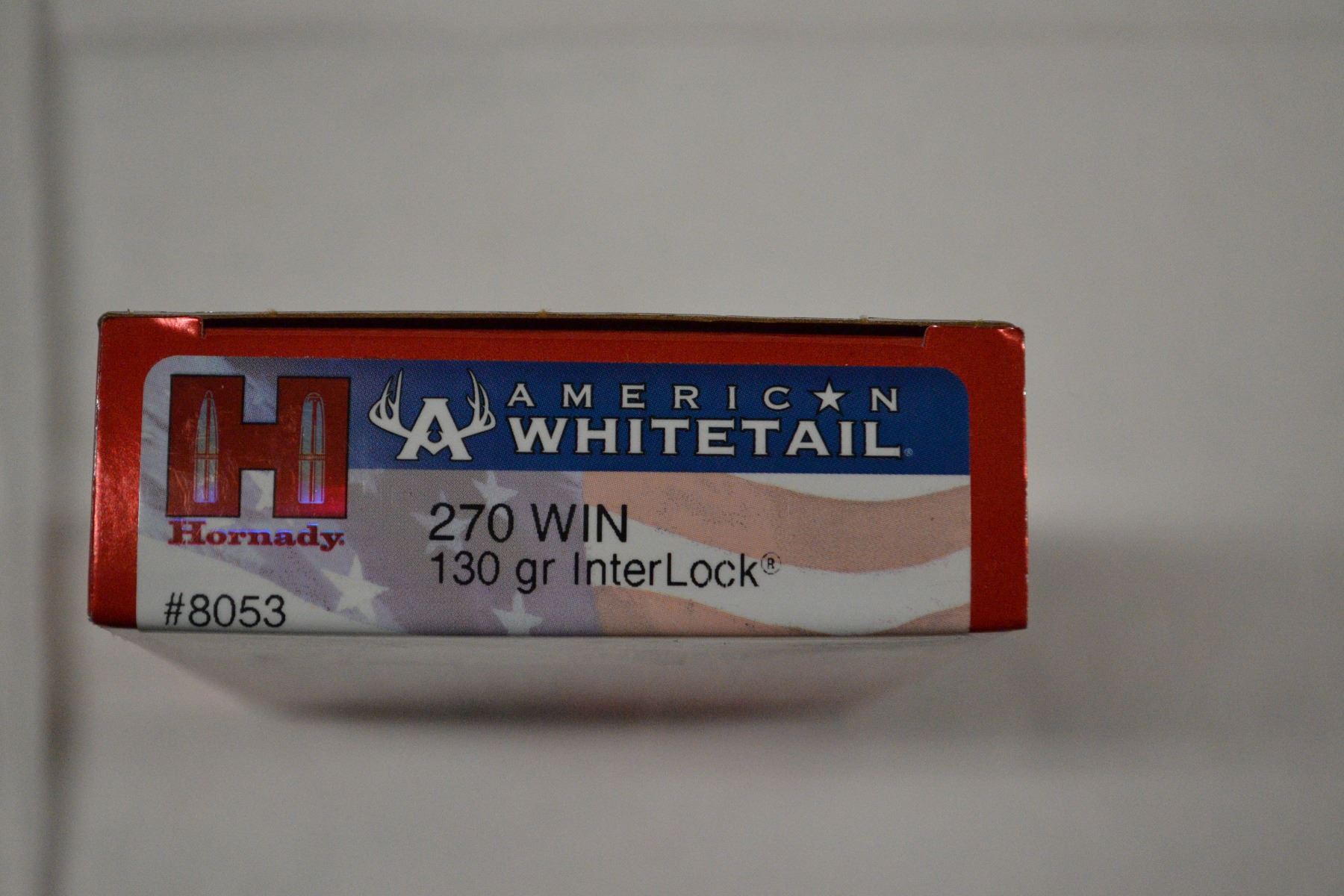 Lot 123 20 ROUNDS HORNADY AMERICAN WHITE 270 WIN 130 GRAIN INTERLOCK