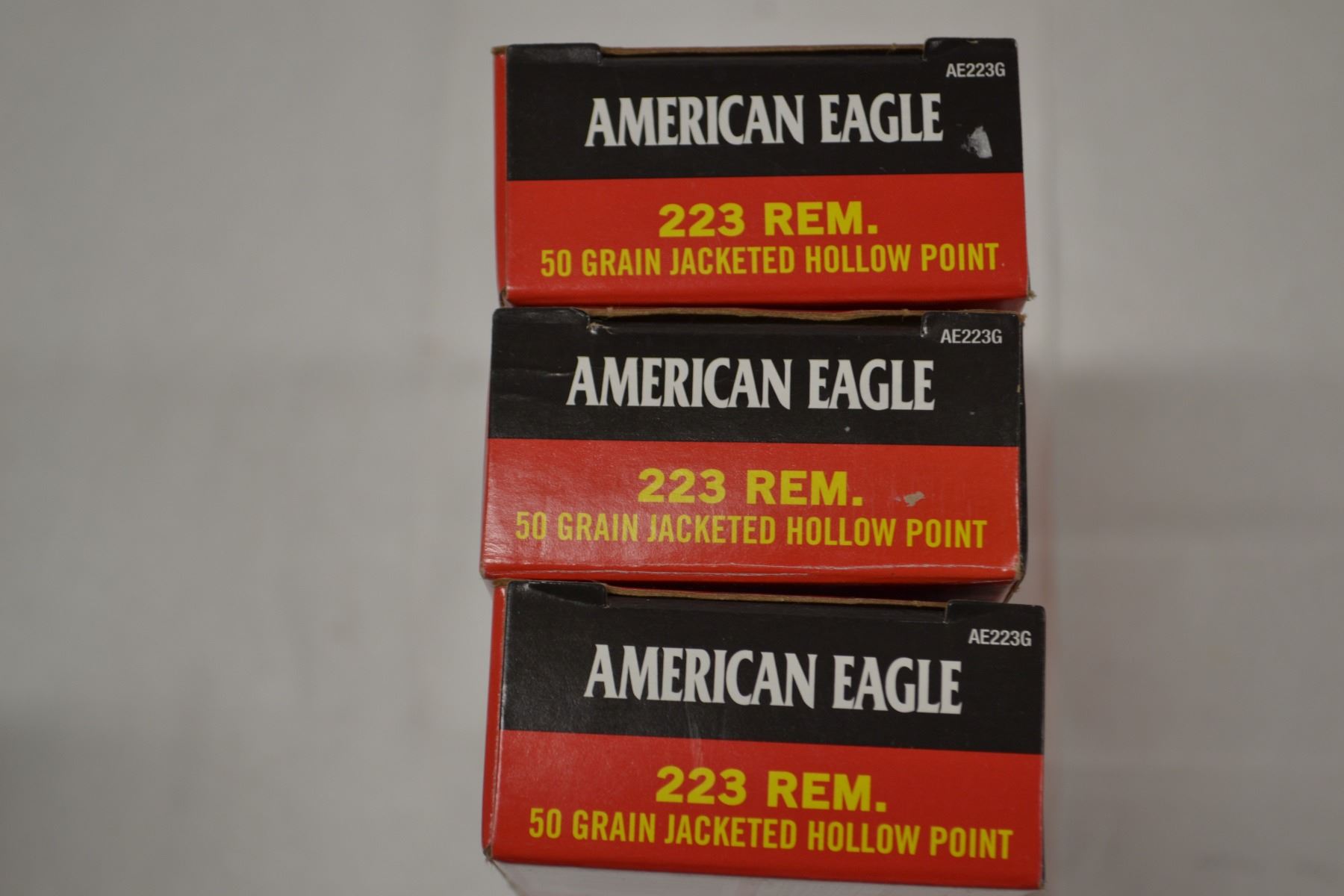 Lot 222 60 ROUNDS AMERICAN EAGLE 223 REM 50 GRAIN JHP