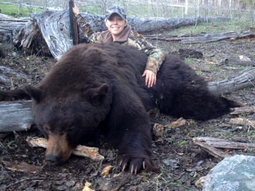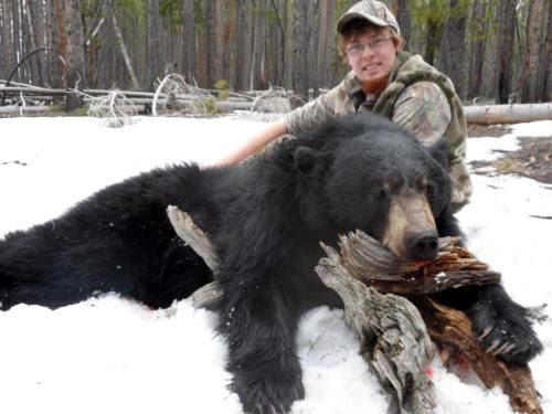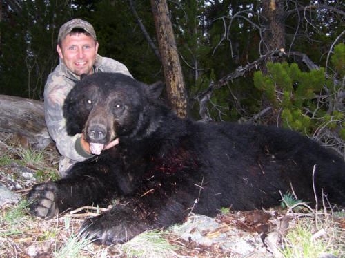 Hunt large color phase black bears in the beautiful mountains of Wyoming on this 7-day hunting trip with deluxe accommodations at our Kendall Valley Lodge. This hunt takes place in the Spring, between May 1 to June 15 in either 2018 or 2019. Included in this hunt is one-on-one guide service over active baits placed in remote areas, trophy fees and field preparation. Horses are also used to get to the more remote areas so we can get away from other bait activity. We are consistent with taking mature boars with good color phases: browns, cinnamons and an occasional blonde bear.