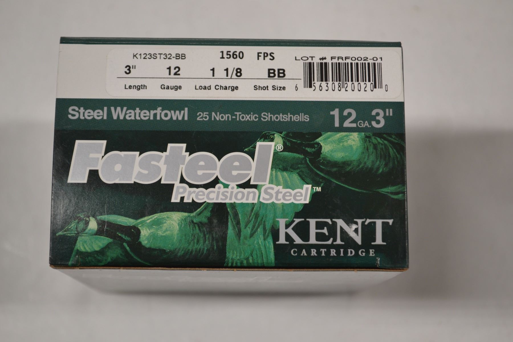 Lot 324 25 ROUNDS KENT STEEL WATERFOWL 12GA 3" 1 1/8 LOAD SHOT SIZE BB