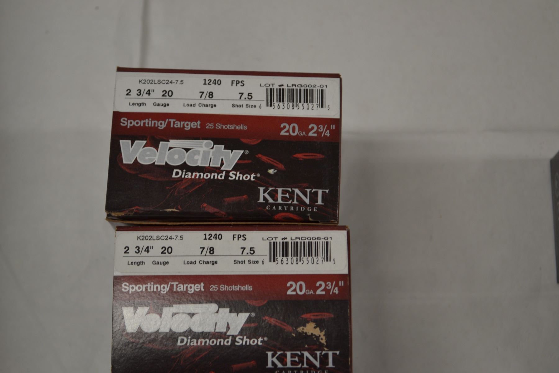 Lot 330 50 ROUNDS KENT VELOCITY 20GA 2 3/4 7.5 SHOT