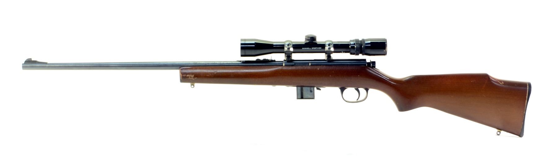 502R-0543 MARLIN 25 MN .22WMR BOLT ACTION. 21" BARREL, BUSHNELL SPORTVIEW 3-9X32 SCOPE. SLING AND SWIVELS. METAL VERY GOOD, WOOD SOME MARKS. MADE IN USA.