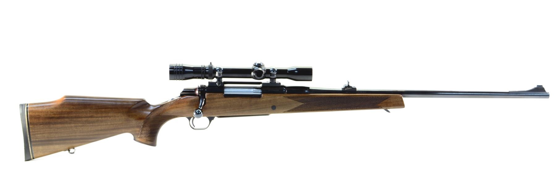 529R-0005 BROWNING BBR .30-06 BOLT ACTION. 25" BARREL, FLUTED BOLT. WILLIAMS SIGHTS, REDFIELD 4 PLEX 2X-7X SCOPE. WALNUT STOCK. MADE IN BELGIUM.