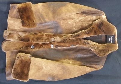Lot 40 Camel break leather jacket w/ rex rabbit dyed camo trim, women's medium