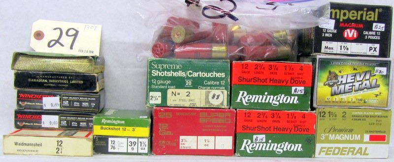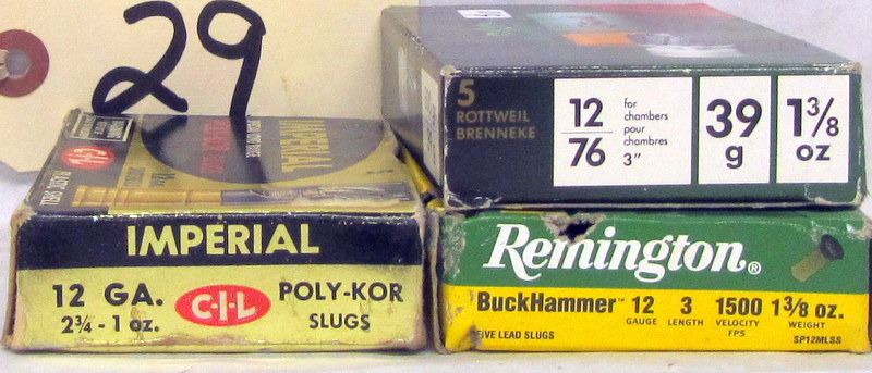 2 3/4" SLUGS 31 RNDS, 2 3/4" SHELLS # 2 20 RNDS, # 4 50 RNDS, # 6 25 RNDS, 3" SLUGS10 RNDS, 3" BUCKSHOT 5 RNDS, 3" SHELLS # 2 26 RNDS, # 3 25 RNDS, # 4 25 RNDS