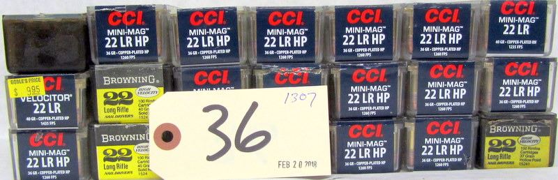 1600 RNDS CCI 36 GR HP, 318 RNDS BROWNING 40 GR SN, 100 RNDS CCI 40 GR HP