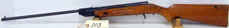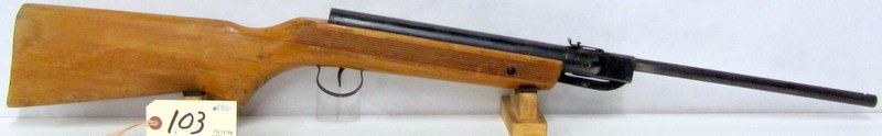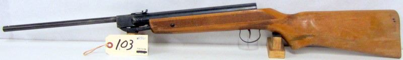 TWO 177 CAL PELLET RIFLES, ONE IS MISSING THE FRONT SIGHT, WOOD IS MARKED FROM HANDLING, BORE IS GOOD, UNKNOWN MAKE, ONE IS MADE BY SLAVIA, MISSING TRIGGER GUARD, BARREL ANDMETAL IS RUSTY, WOOD IS MARKED