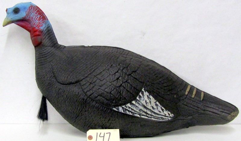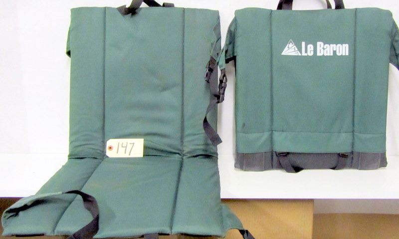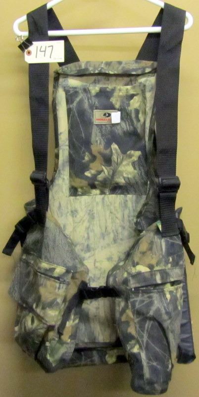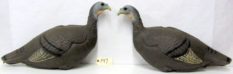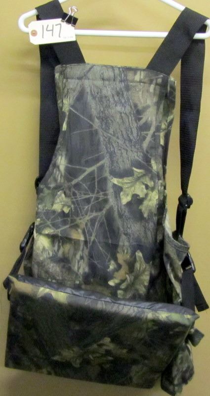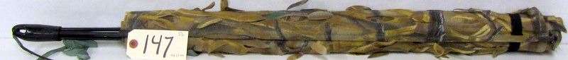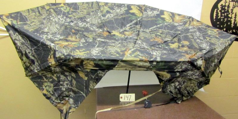 CAMO RAIN UMBRELLA, CAMO GROUND BLIND WITH POLES, ROUGHLY 26" HIGH X 10 FT LONG, 2 LeBARON GREEN STADIUM SEATS, TURKEY HUNTING VEST WITH SEAT, TWO FOAM FOLDABLE HEN TURKEY DECOYS WITH STAKES, ONE FOAM FOLDABLE JAKE DECOY WITH STAKES