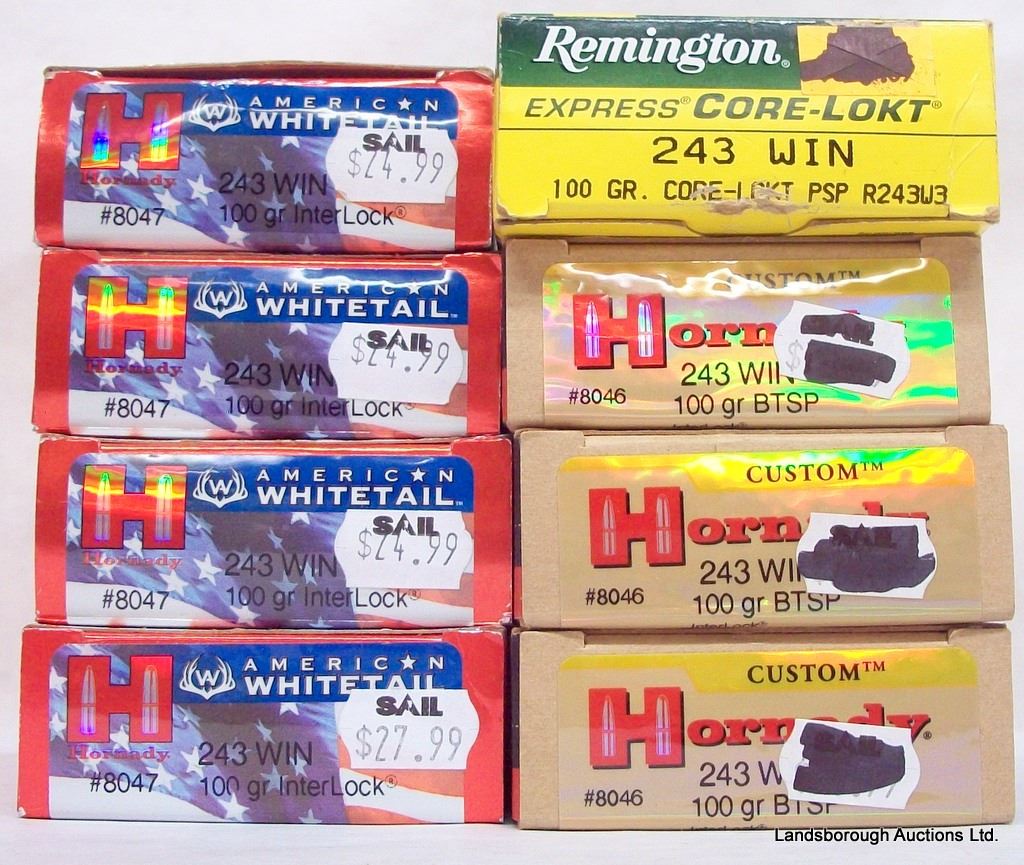 72 RNDS HORNADY WHITETAIL, 60 RNDS HORNADY 100 GRN BTSP, 5 RNDS REMINGTON 100 GRN.