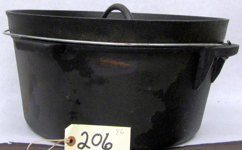 CAST IRON DUTC H OVEN, 14" ACROSS 6 1/2" DEEP, CAST IRON SKILLET 15" ACROSS, CAST IRON 10 1/2" SKILLET