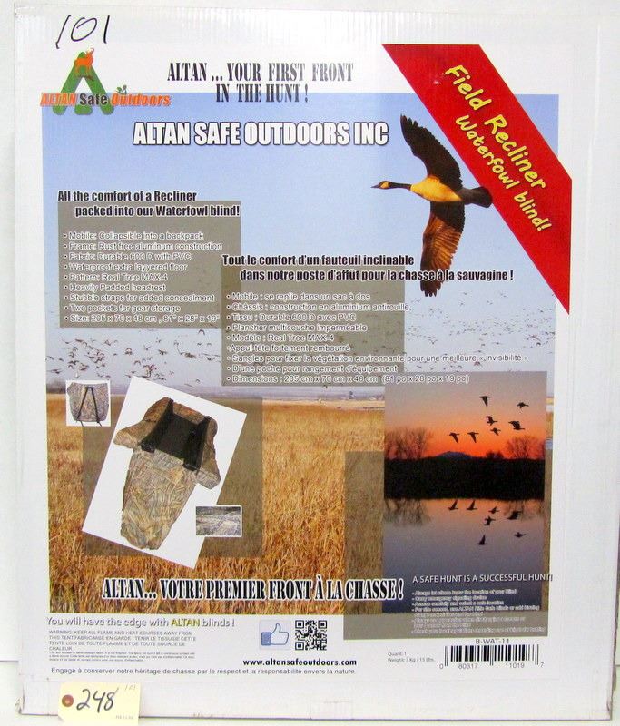 NEW IN BOX, ALTAN SAFE OUTDOORS FIELD RECLINER WATERFOWL BLIND