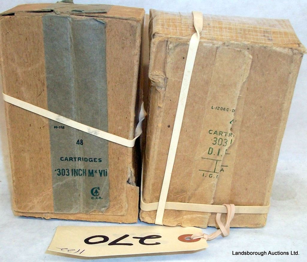 DATED 1941 AND 1944. STAMPED - L1206C DI 48 CARTRIDGES 303 INCH DI MK VII ZIG CANADA AND H112/48 CARTRIDGES 303 INCH MK VII CIA. BOXES OPEN.