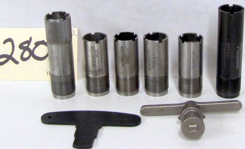 12 GA REMINGTON CHOKE TUBES, 2 MODS. 1 FULL, 1 SKEET, 1 IM FOR STEEL, LEAD, COPPER OR HEAVY SHOT, 1 XFULL TURKEY LEAD ONLY, 2 DIFFERENT STYLE CHOKE TUBE WRENCHES