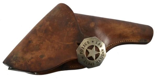 * Also comes with badge and marked holster . Inscribed on bottom of grip "MEX NAT'L RR". From an old Columbus, New Mexico collection. Made famous by the Pancho Villa raid in 1916.