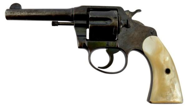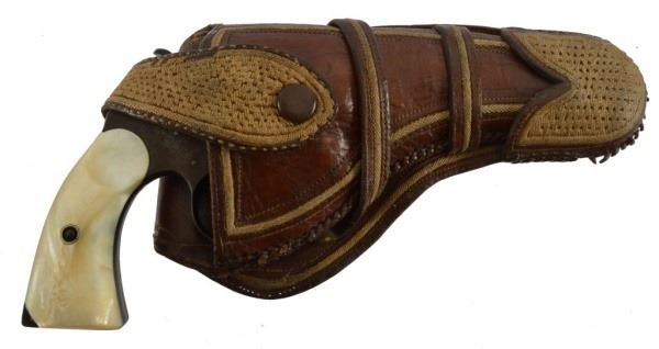 * With mother of pearl grips and period holster. From an old Columbus New Mexico collection. Made famous by the Pancho Villa raid in 1916.