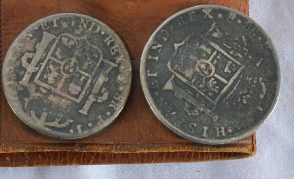 Rare late 19th century. Adorned with 20 Reales Spanish Colonial Coins. Built in holster. Magnificent as found condition.