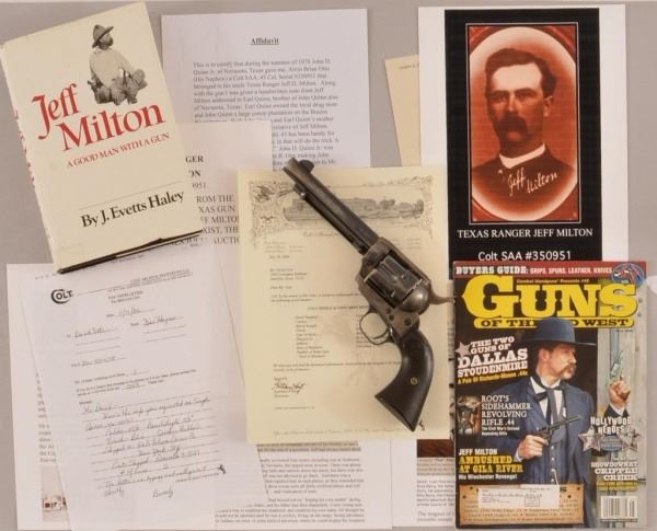 * Comes with provenance letter from Jeff Milton & his nephew who inherited it. Also comes with a factory letter & a copy of the book "Jeff Milton".Important Texas Ranger gun. The only other firearm belonging to Jeff Milton that was sold at auction for $150,000 & the same gun sold 5 years later for $200,000.