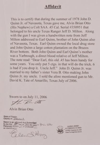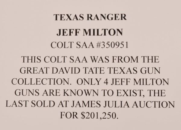 Lot 126A Texas Ranger Jeff Milton's Colt Model 1873 SAA .45