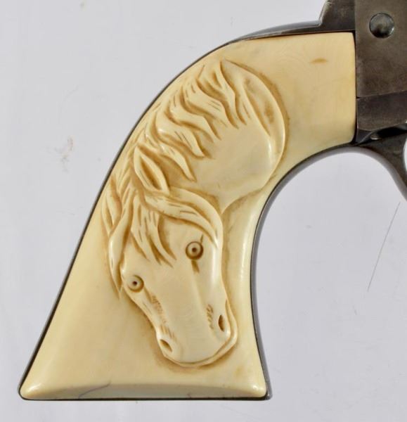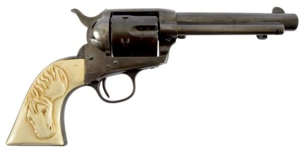 * Belonged to Sheriff Leroy Marvin Herron, a sheriff in South Texas, near Cotulla in the 1920s and 30s. Carved ivory grips, 5-1/2" barrel. Factory letter. With photos of sheriff and paperwork.