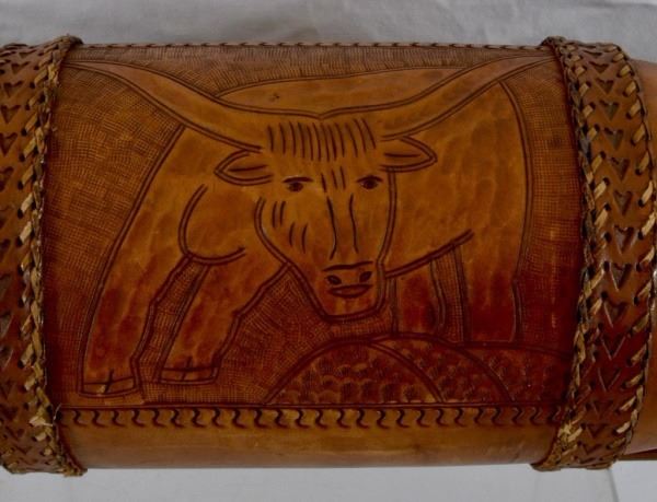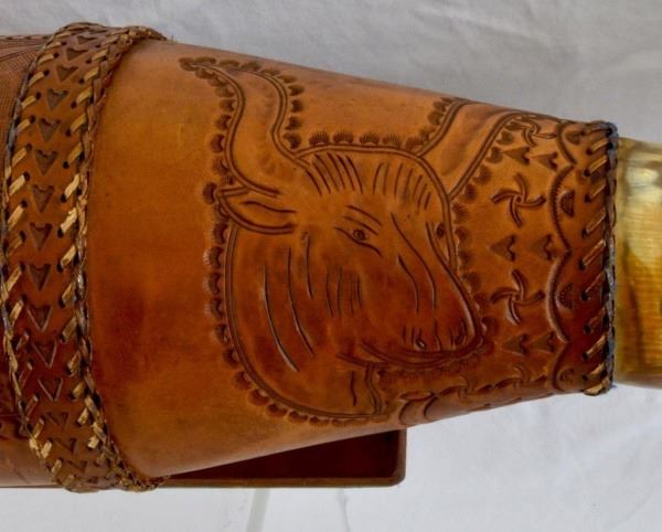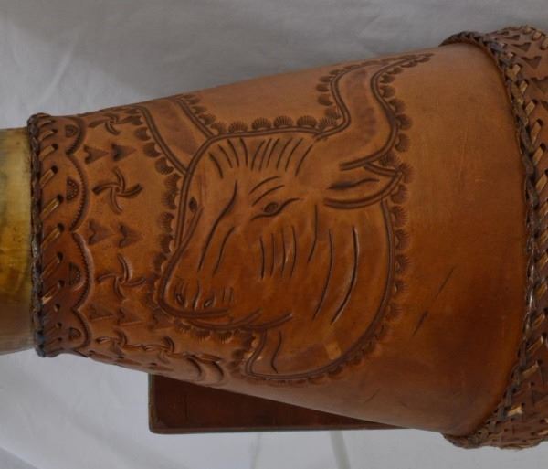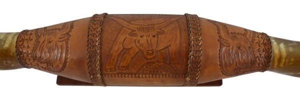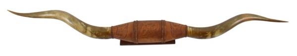 Lot 178 Huge Longhorn Mount With Tooled Leather Wrap