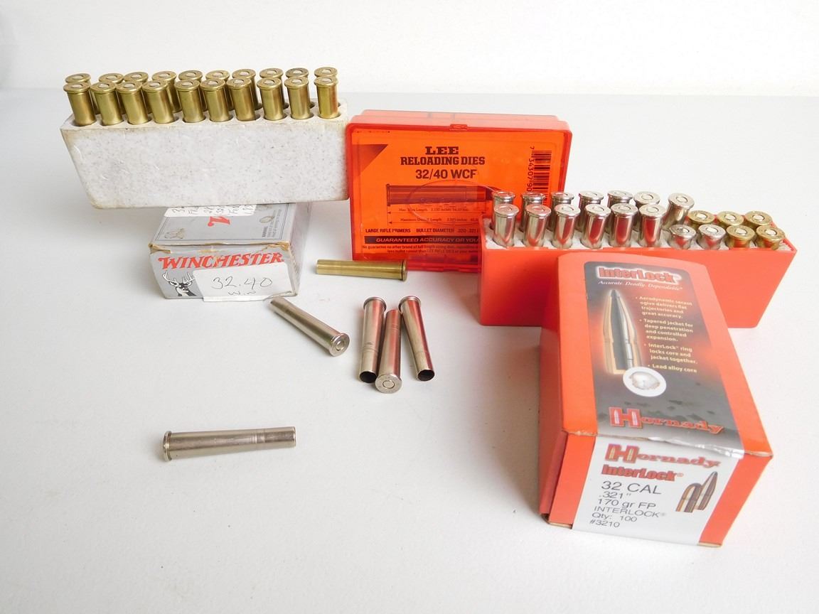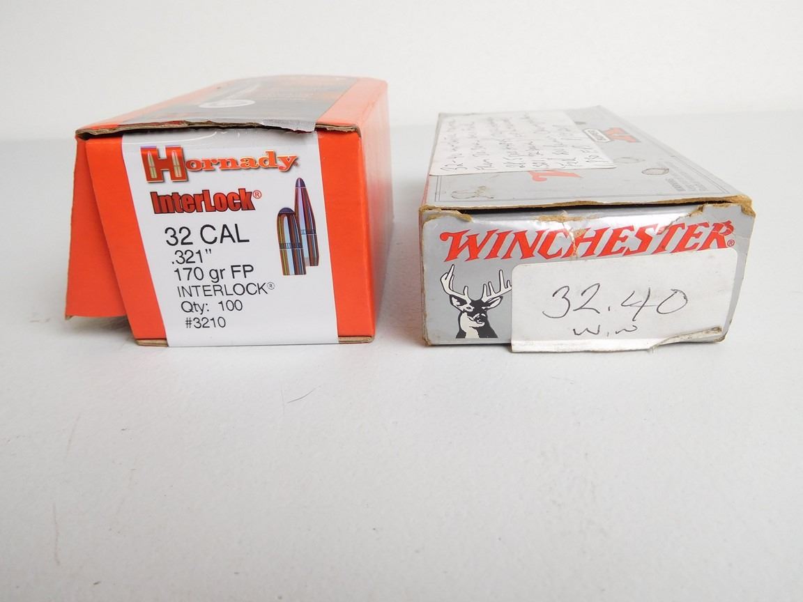 Lot 2117 ASSORTED LOT INCLUDING LEE 32-40 RELOADING DIE SET, HORNADY 32 CAL 170 GR BULLETS 32-40 AMMO AND PRI