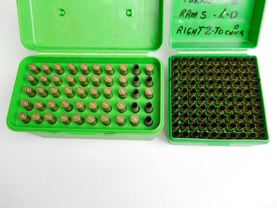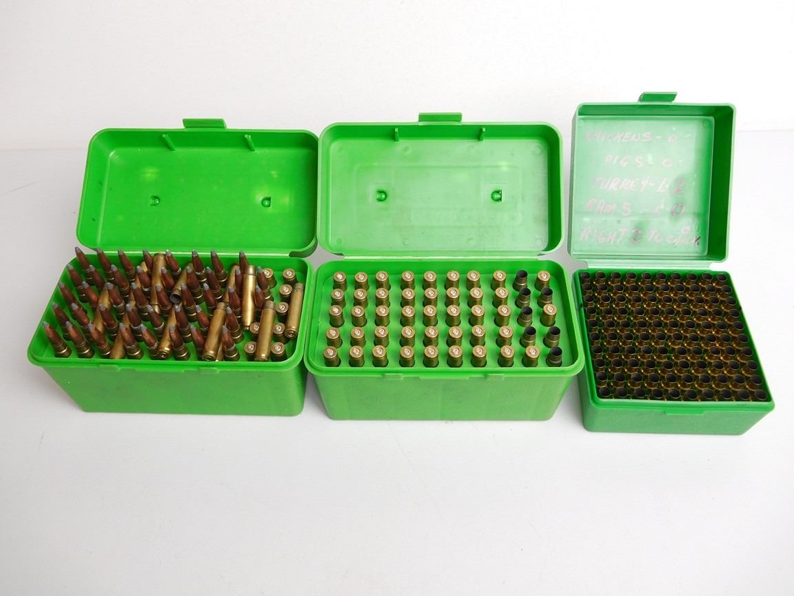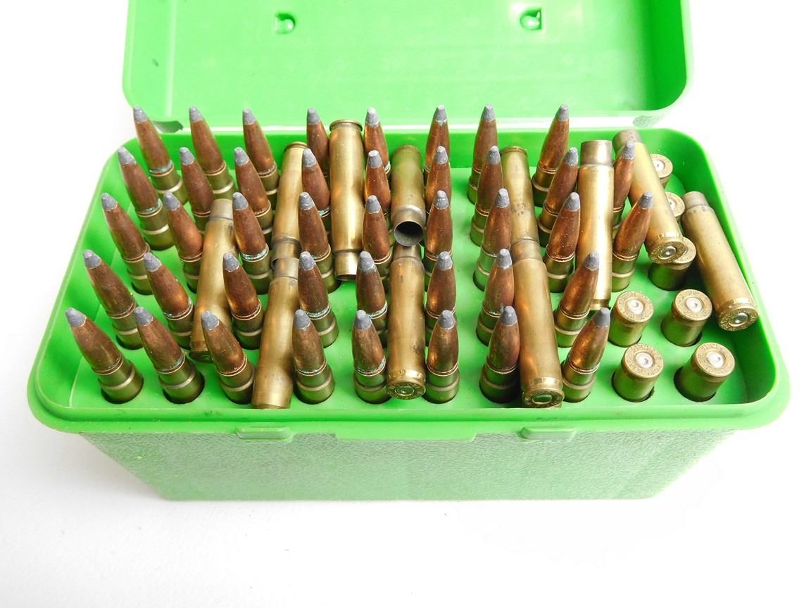 Lot 2128 ASSORTED RNDS OF 223 -7MM T/CU AND BRASS WITH PLASTIC HOLDERS