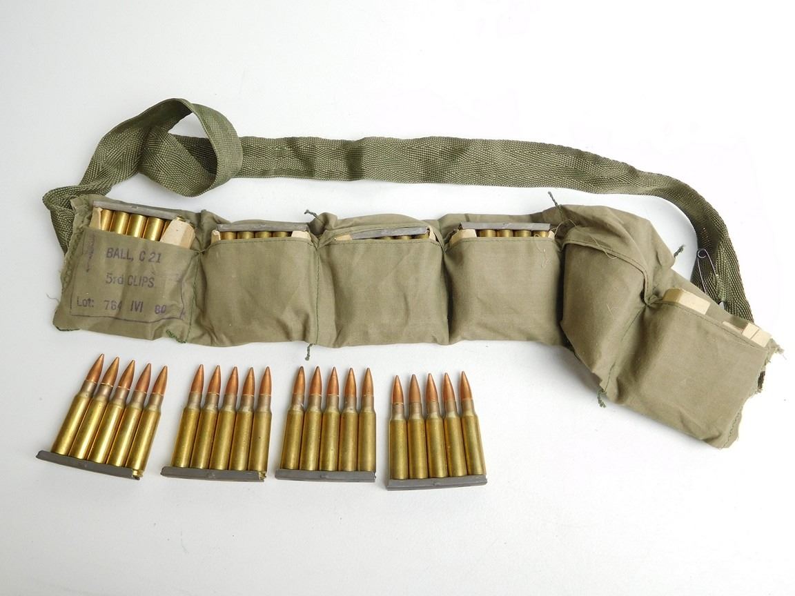 Lot 2147 1970'S IVI 7.62 NATO ON STRIPPER CLIPS AND CLOTH BANDOLIER