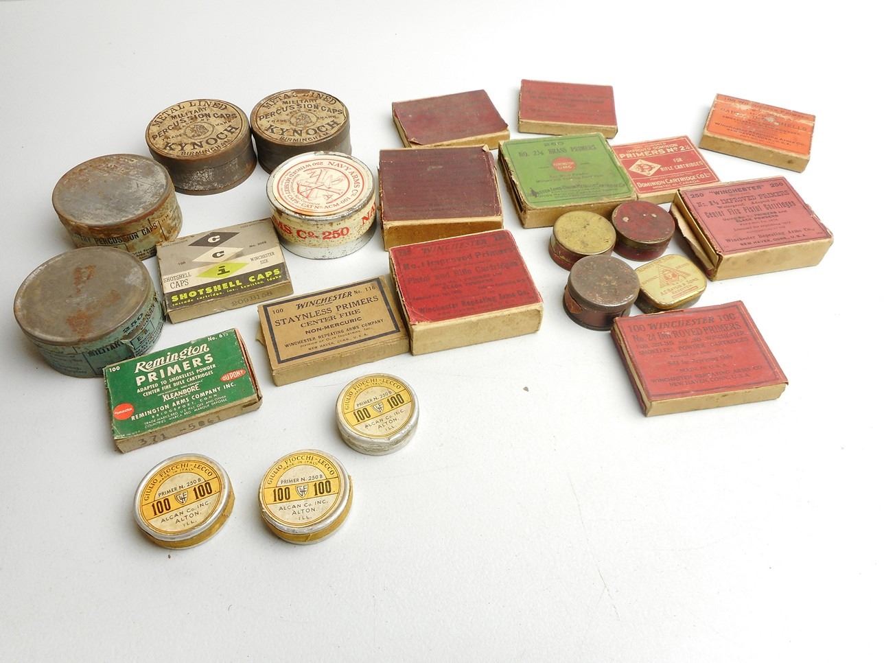 Lot 2183 LARGE LOT OF ANTIQUE PRIMERS INCL MILITARY PERCUSSION CAPS, MUSKET CAPS, AND SMALL UNMARKED TINS