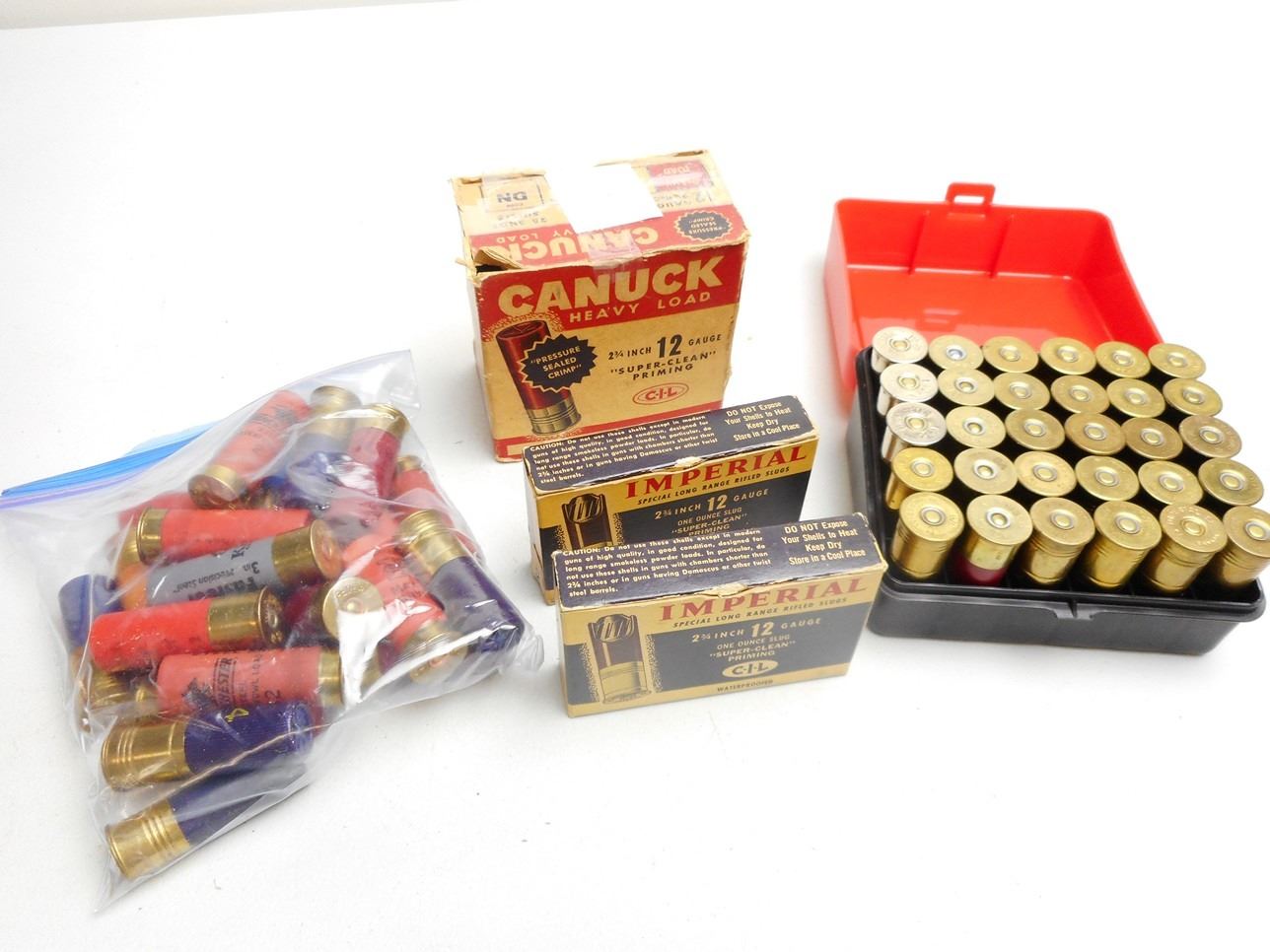 Lot 2289 ASSORTED LOT OF 12 GA X 2 3/4 SHOTGUN SHELLS VARIOUS INCLUDING RIFLED SLUGS AND SHOT SIZES WITH PLAS