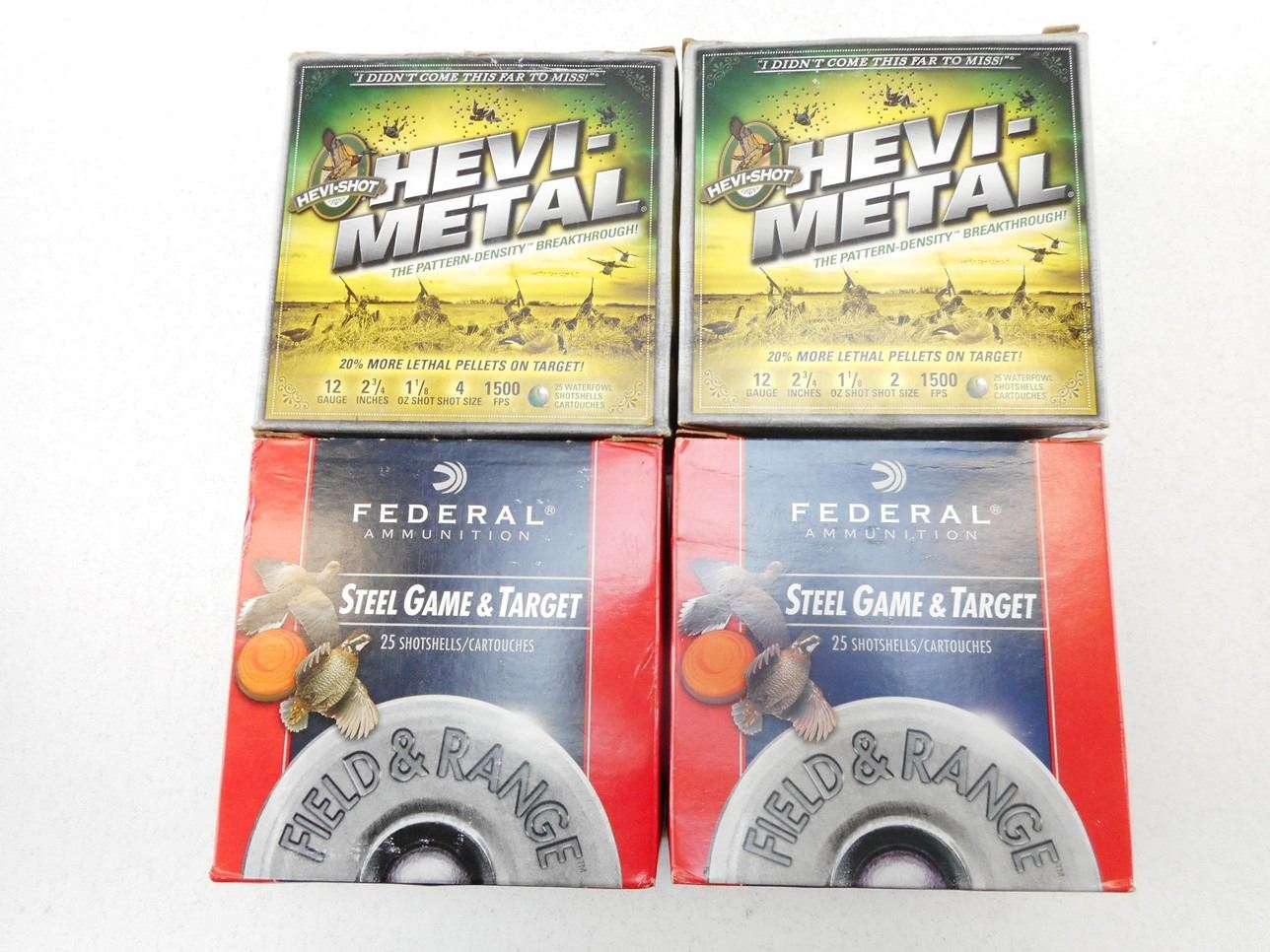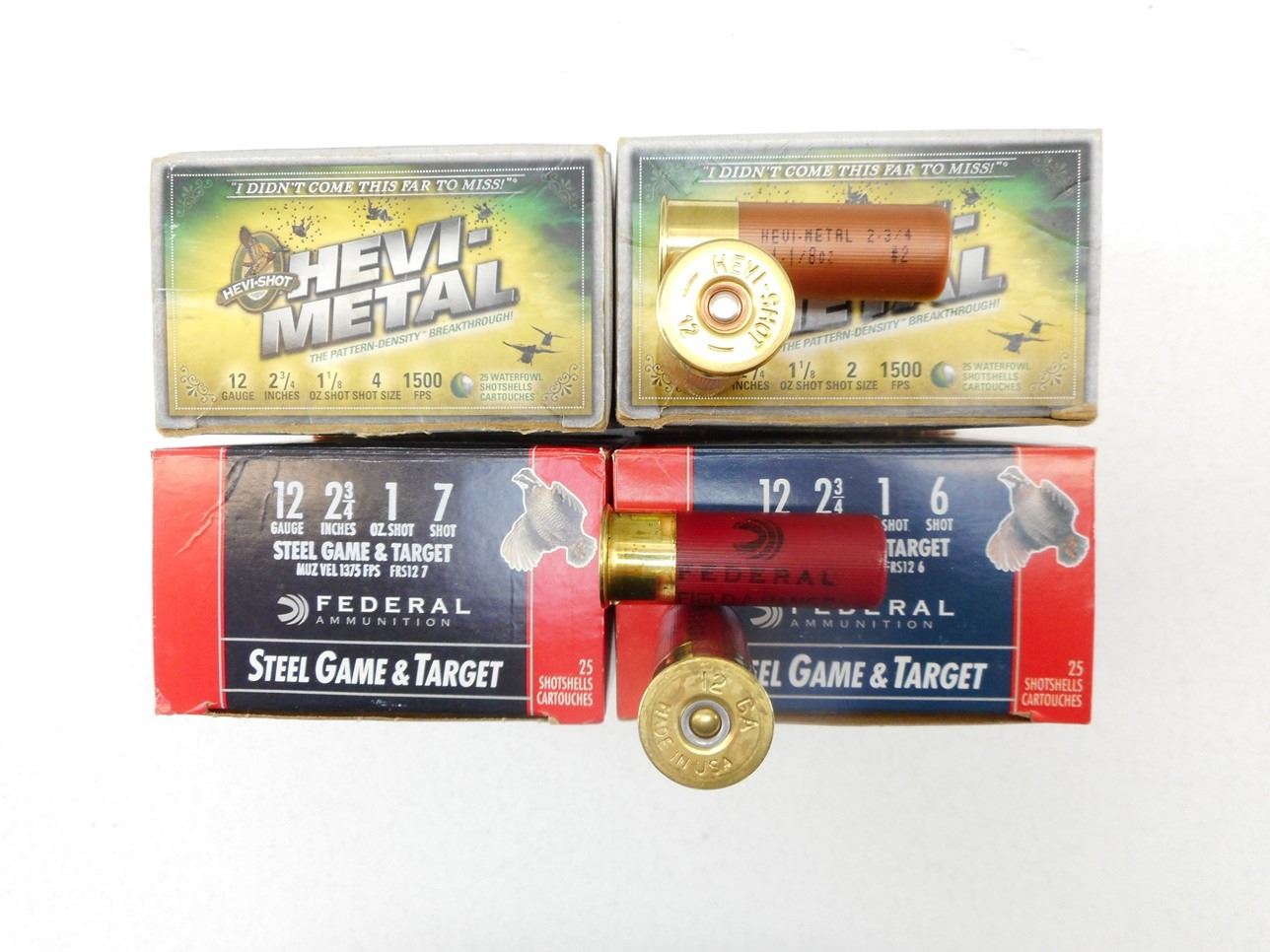 Lot 2348 ASSORTED LOT OF 12 GA X 2 3/4 INCLUDING FEDERAL STEEL GAME AND TARGET AND HEVI-METAL VARIOUS SHOT SI