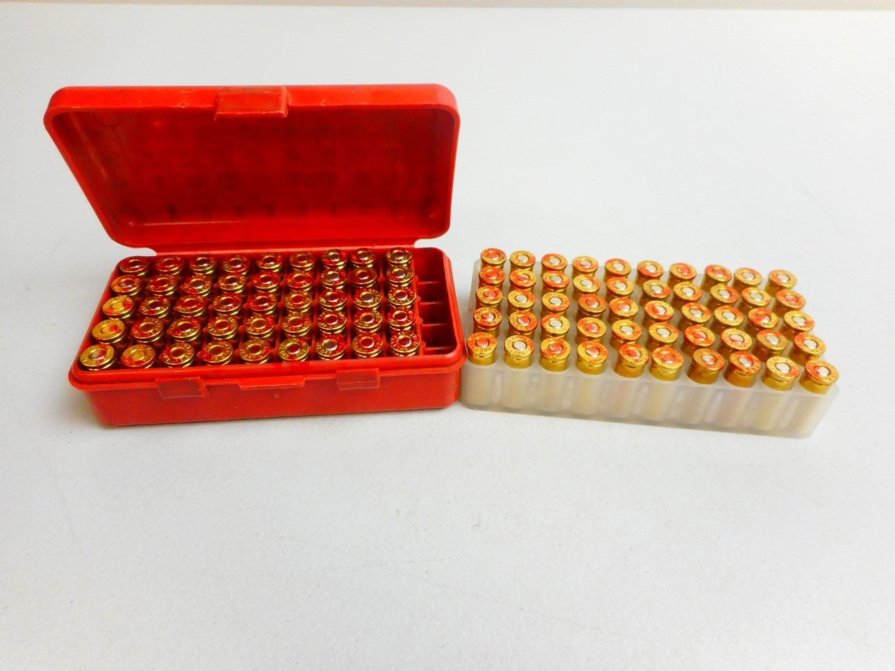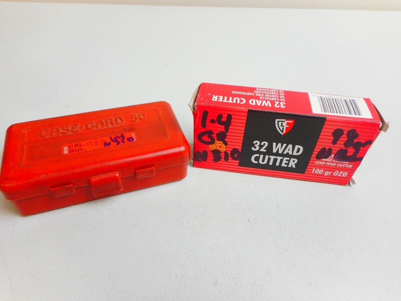 95 RNDS AMMO RELOADS INCLUDES 32 WADCUTTER & 32 S&W LONG, IN PLASTIC CASE