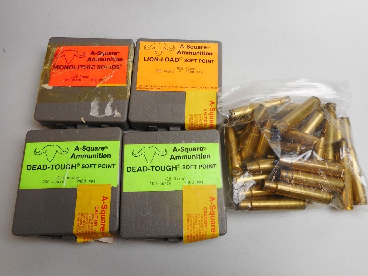 Lot 3066 A-SQUARE .416 RIGBY BRASS SOME IN 4 PLASTIC HOLDERS