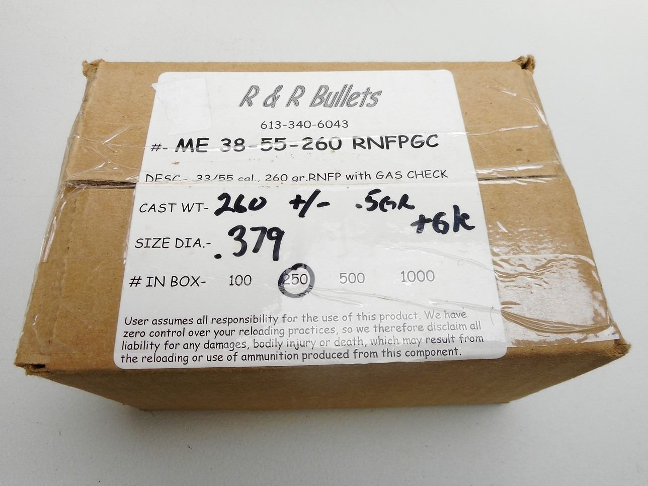 Lot 3220 R & R BULLETS 38-55 260 GR LEAD BULLETS
