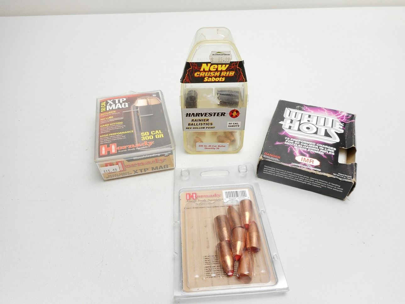INCL. HORNADY 50 CAL SABOTS AND BULLETS, 50 CAL 350 GR FPB BULLETS,AND WHITE HOTS CHARGES FOR 50 CAL. IN-LINE MUZZLELOADING RIFLES
