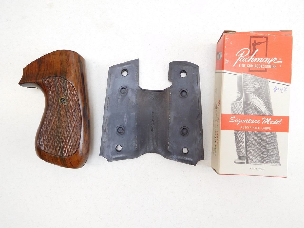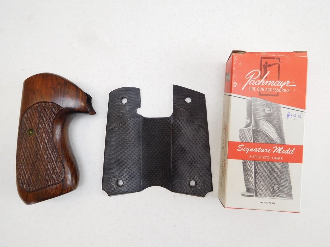 (1) WOODEN GRIP, (1) PACHMAYR RUBBER GRIP: COLT 45 COMBA, LOT OF 2