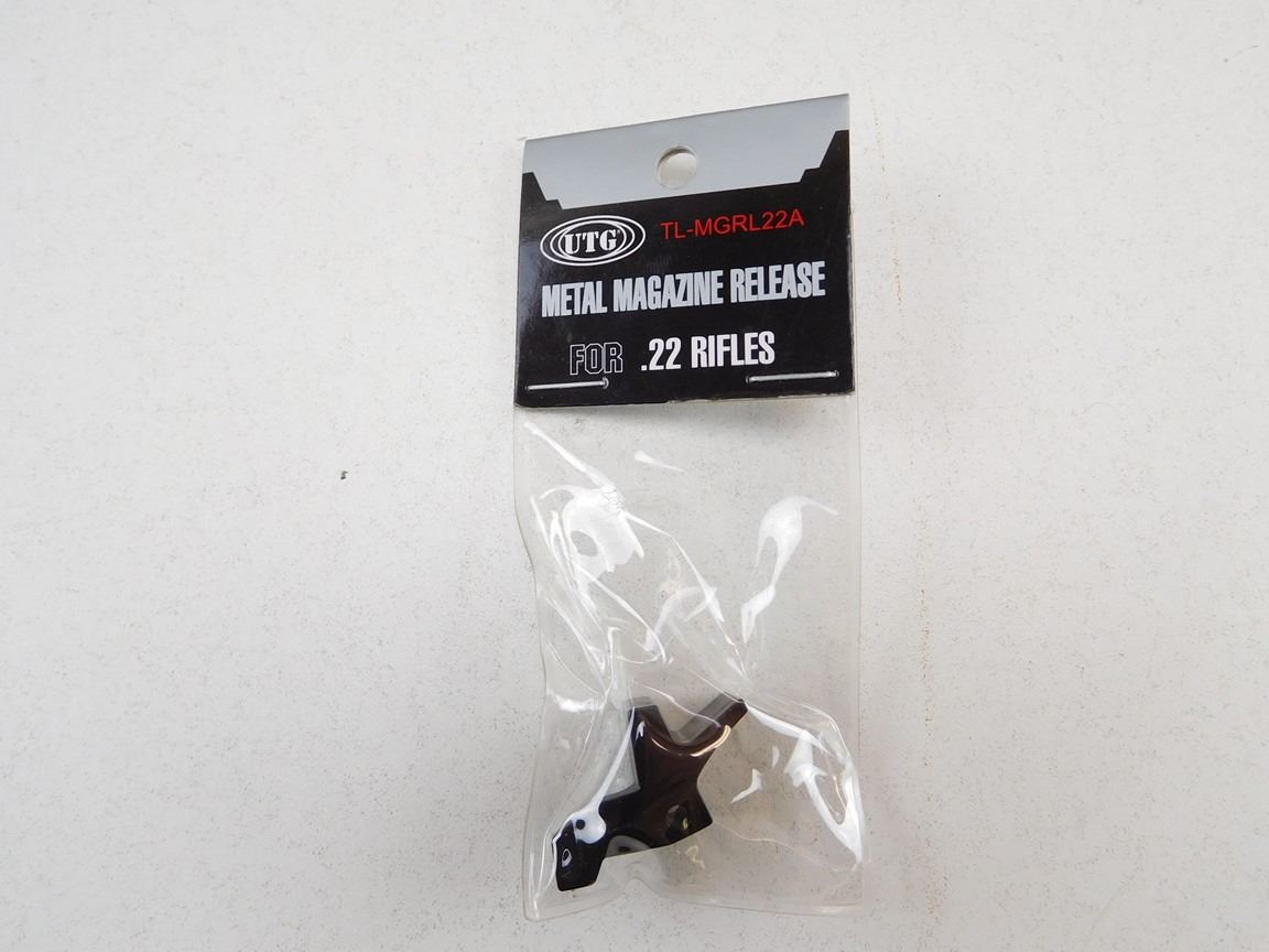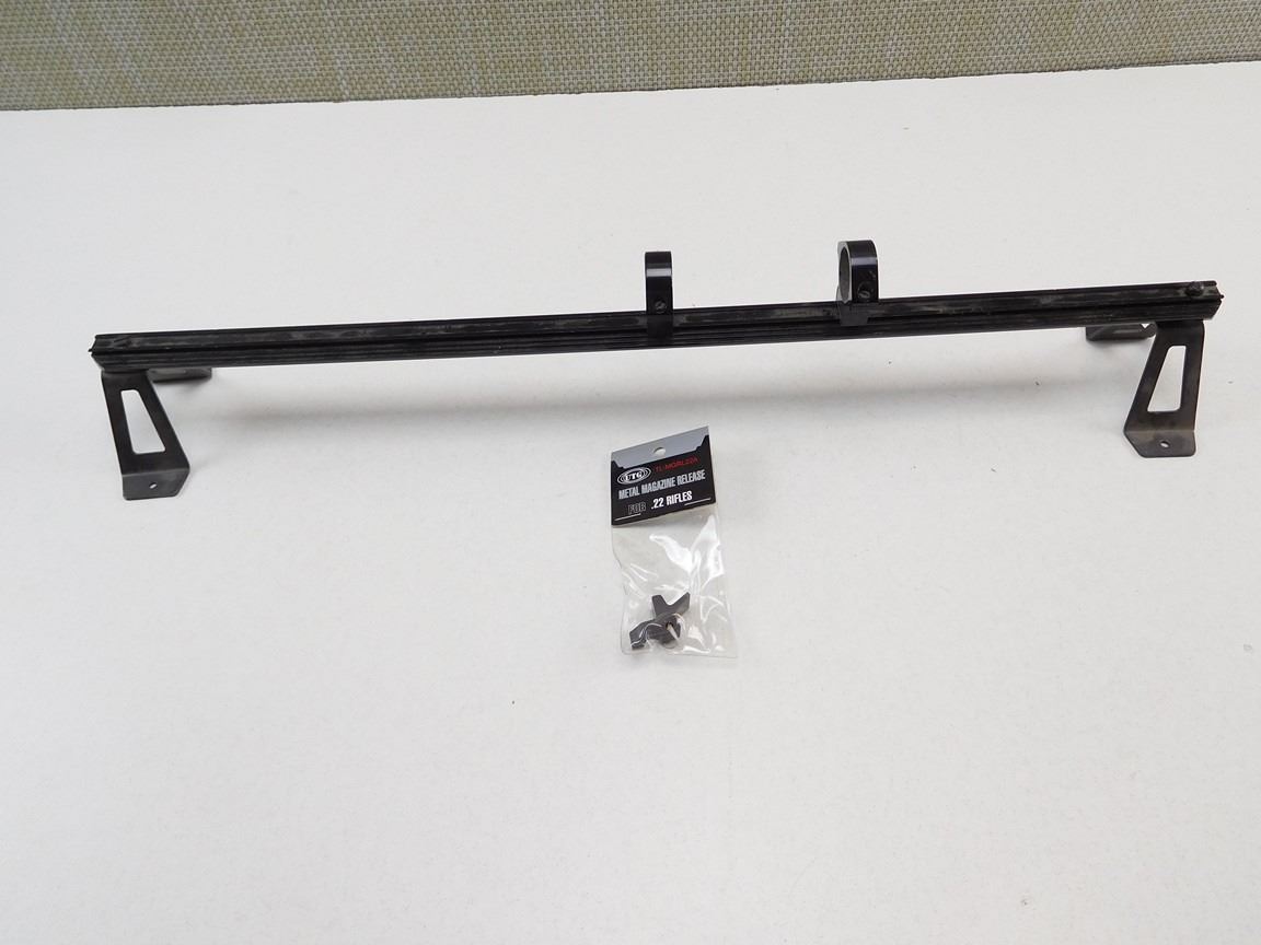 (1) SCOPE MOUNT WITH RINGS, (1) METAL MAGAZINE RELEASE FOR .22 RIFLES, LOT OF 2