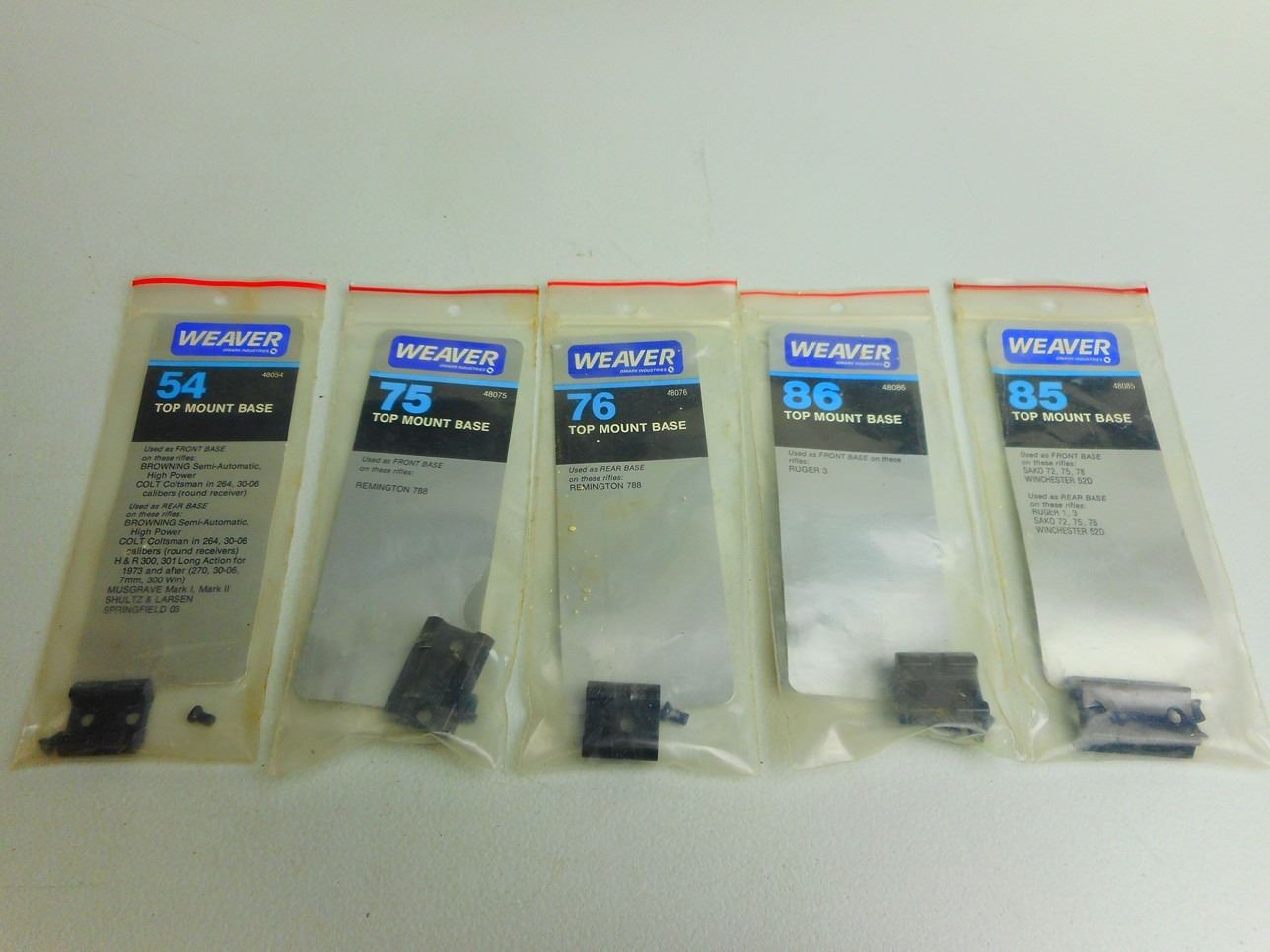 Lot 4254 ASSORTMENT OF WEAVER TOP MOUNT BASES # 54, #75, #76,# 85 AND # 86