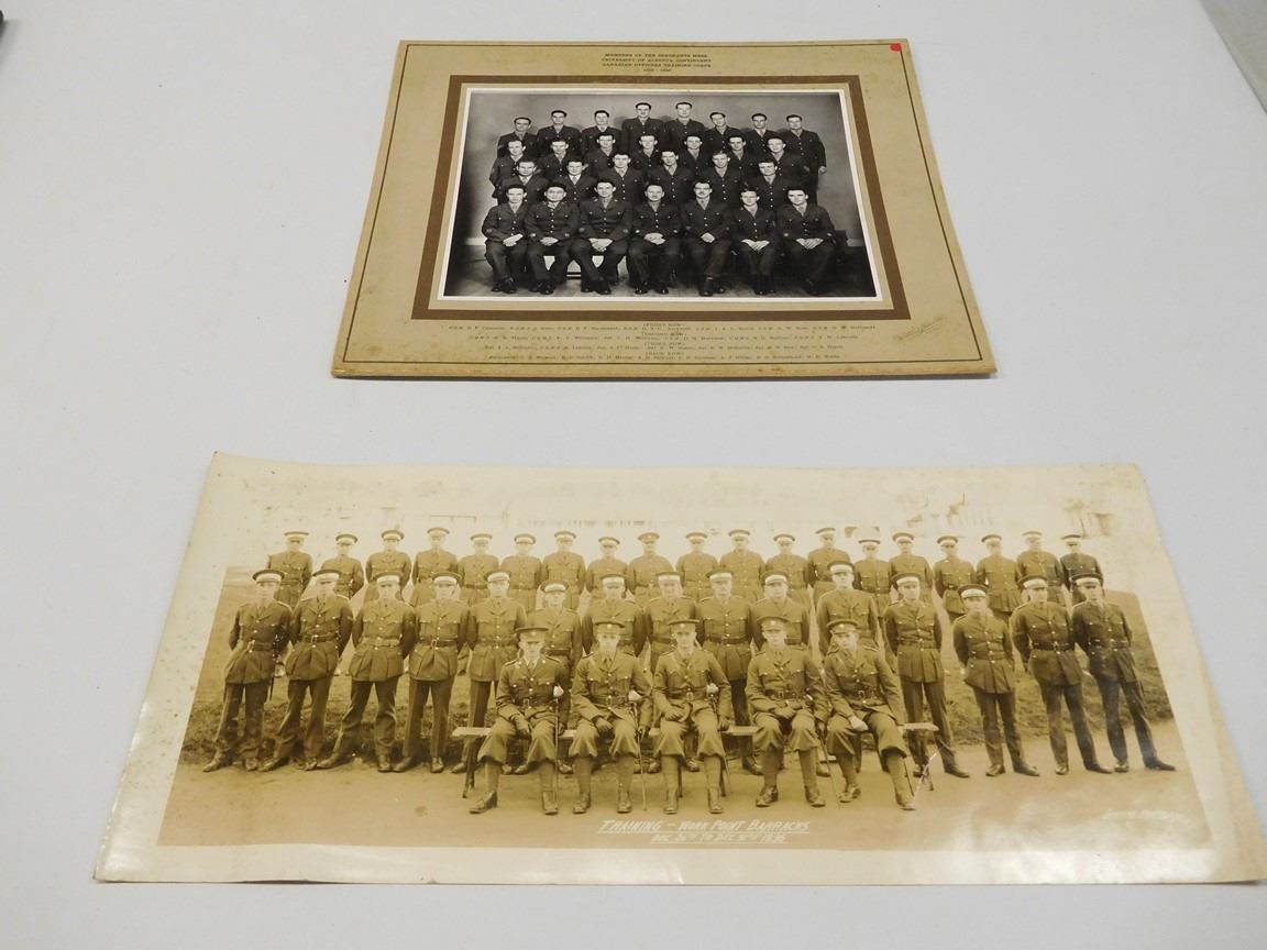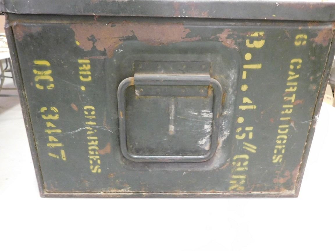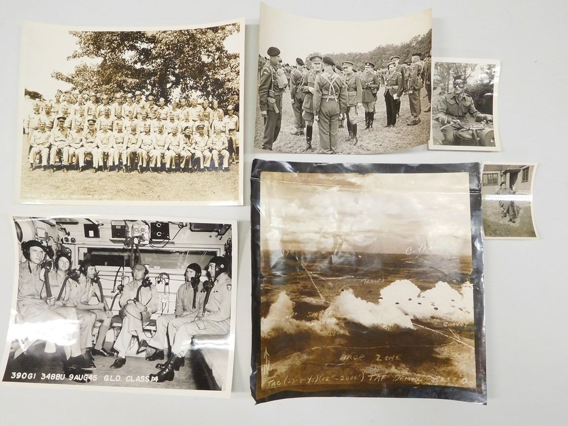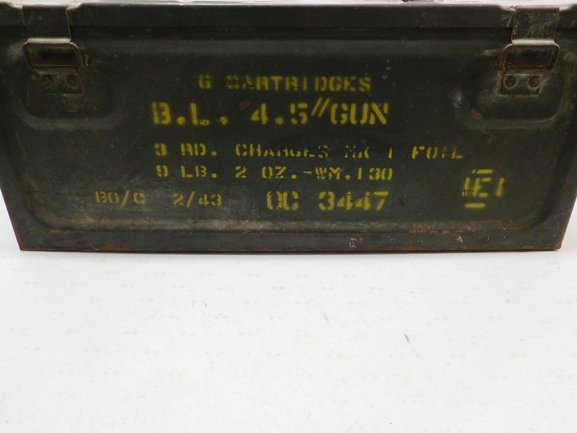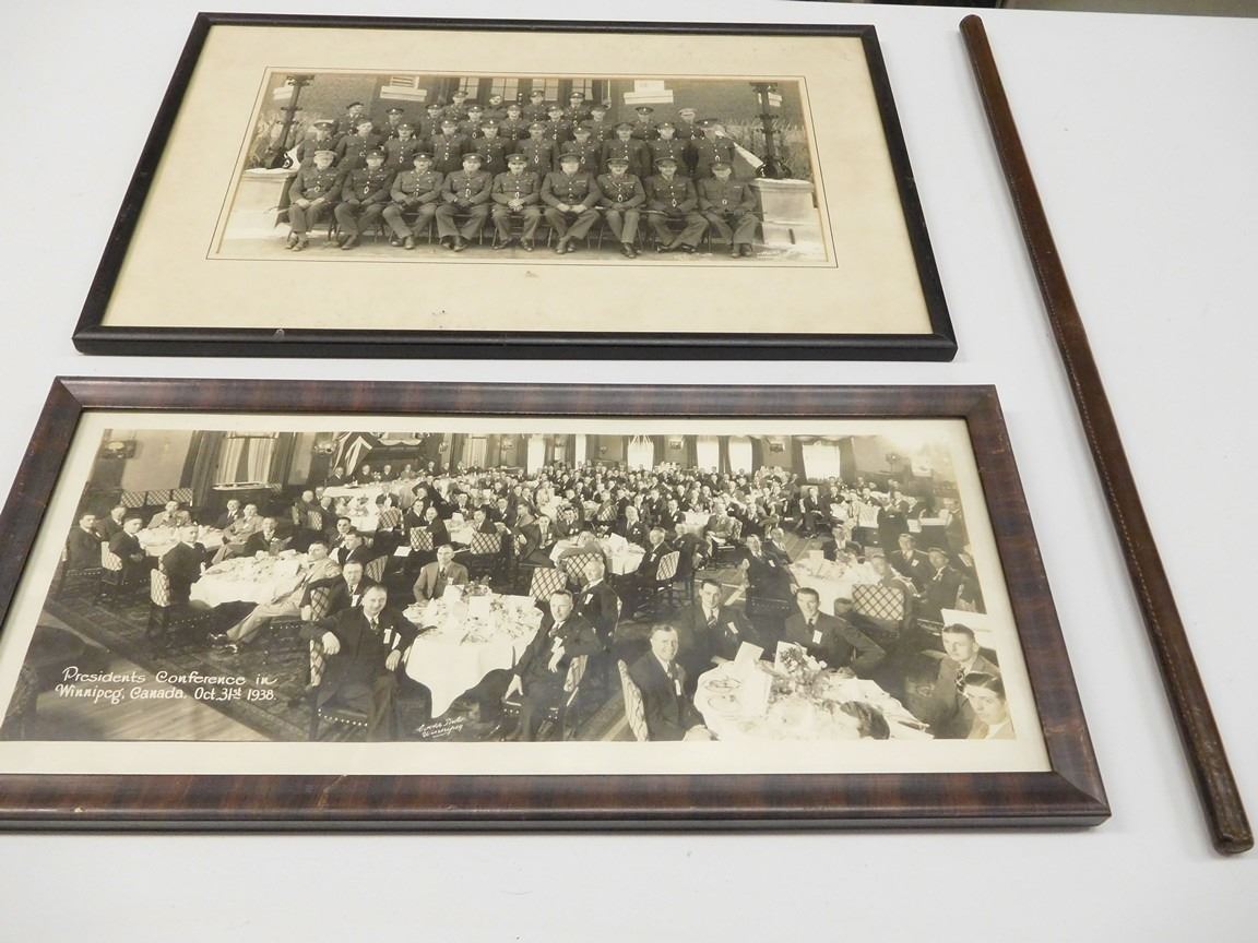 LARGE COLLECTION IN AMMO TIN 24 X 14.5 X 10" STAMPED 1942, INCLUDES MILITARY DOCUMENTS: INVOICES, MEDICAL RECORDS, BOOKLETS, CALEDER, MAPS, ASSORTED PHOTOS (2) FRAMED WITH GLASS 19 X 12" & 19 X 9", MANY UNFRAMED, LEATHER BATON, WEDDING BOOKLET, NEWSPAPER CLIPPINGS, PIPS, RIBBON, & BADGES, & PHOTOCOPIES OF DOCUMENTS