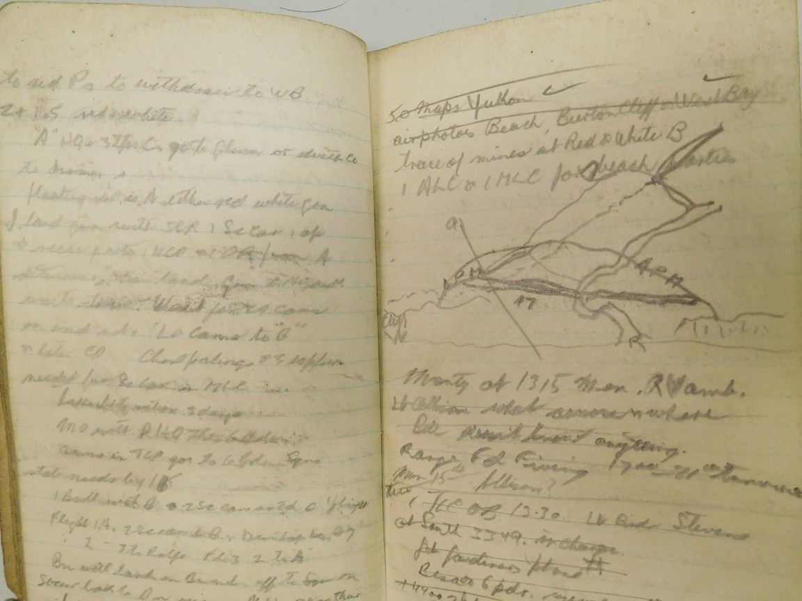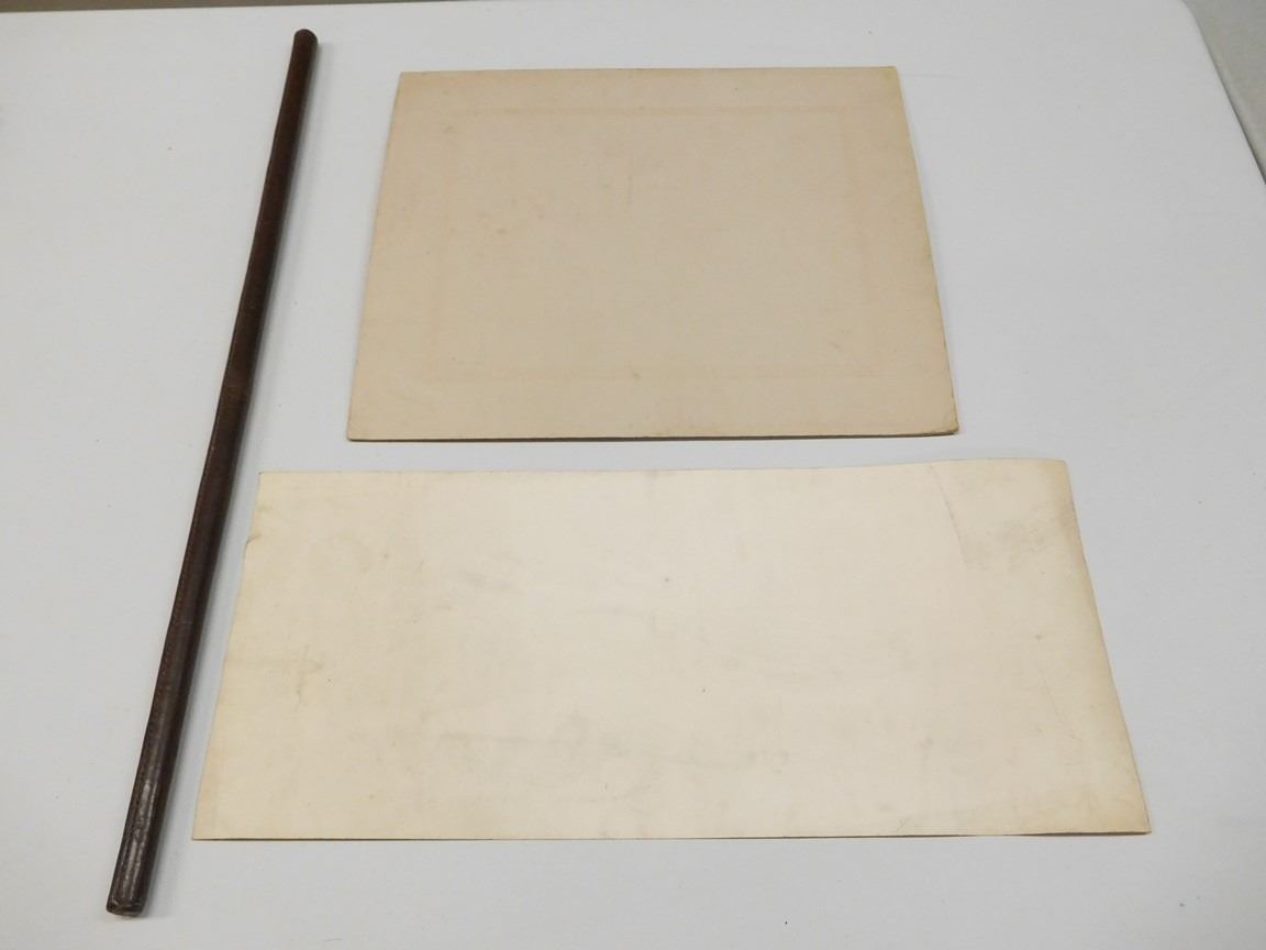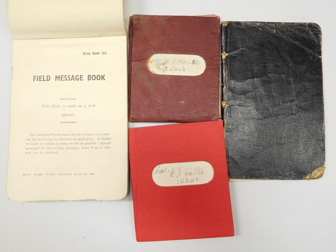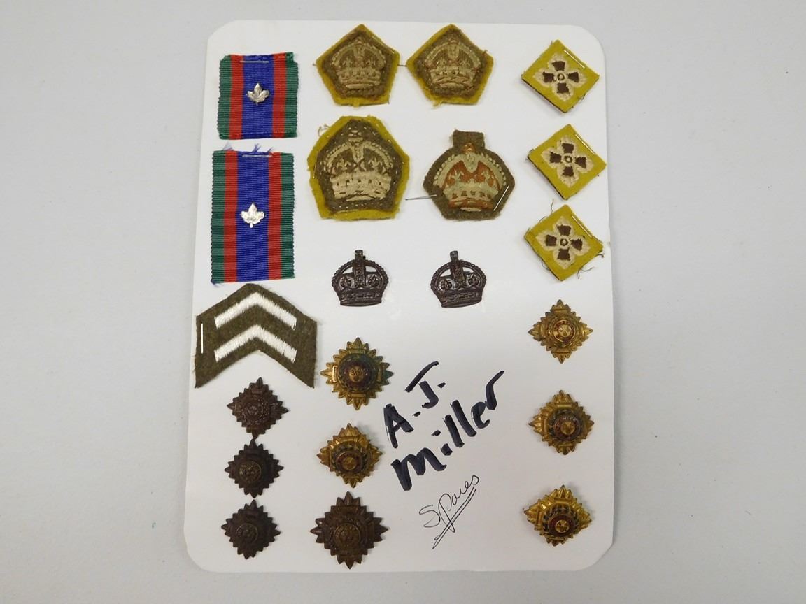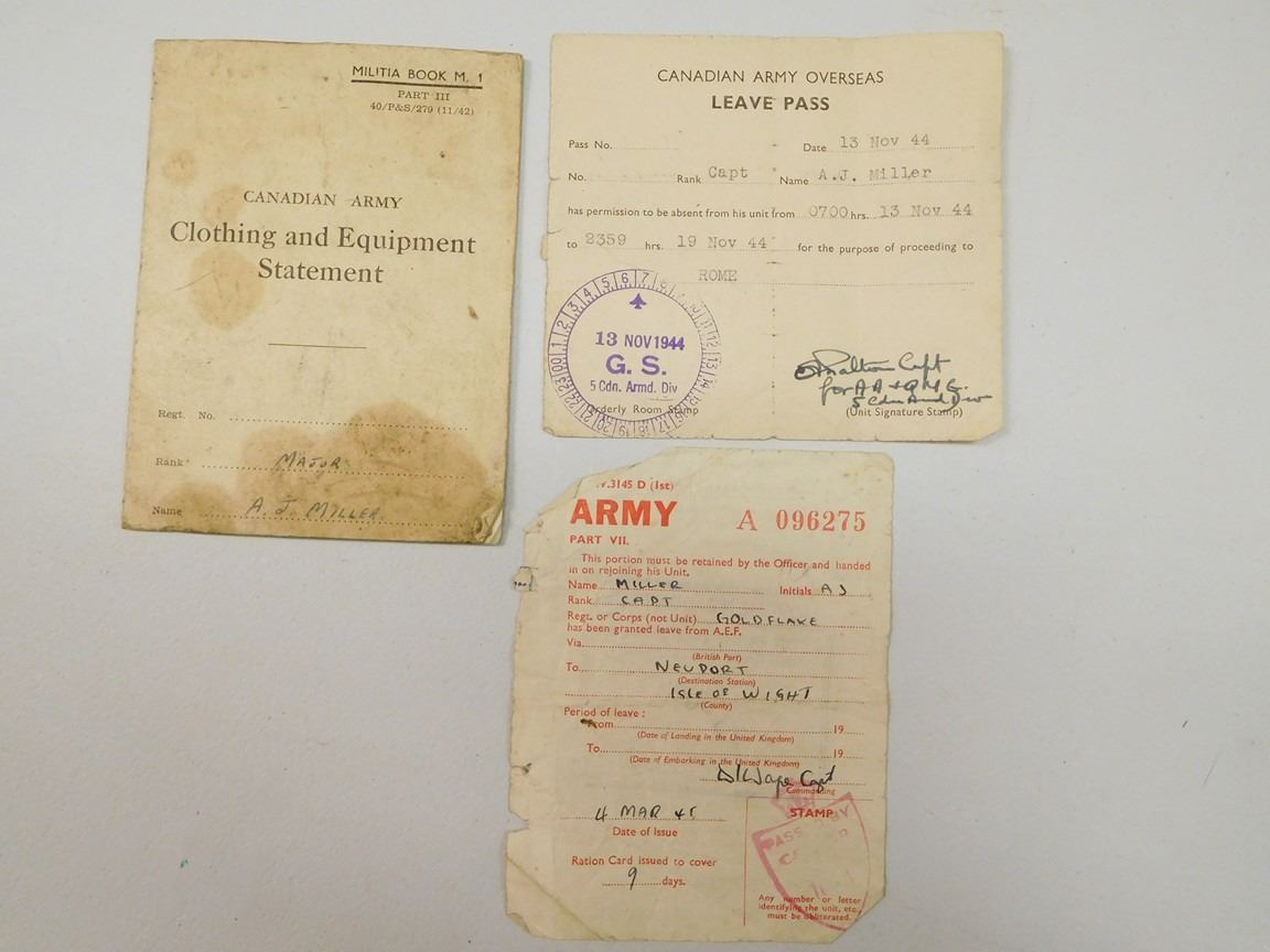 LARGE COLLECTION IN AMMO TIN 24 X 14.5 X 10" STAMPED 1942, INCLUDES MILITARY DOCUMENTS: INVOICES, MEDICAL RECORDS, BOOKLETS, CALEDER, MAPS, ASSORTED PHOTOS (2) FRAMED WITH GLASS 19 X 12" & 19 X 9", MANY UNFRAMED, LEATHER BATON, WEDDING BOOKLET, NEWSPAPER CLIPPINGS, PIPS, RIBBON, & BADGES, & PHOTOCOPIES OF DOCUMENTS