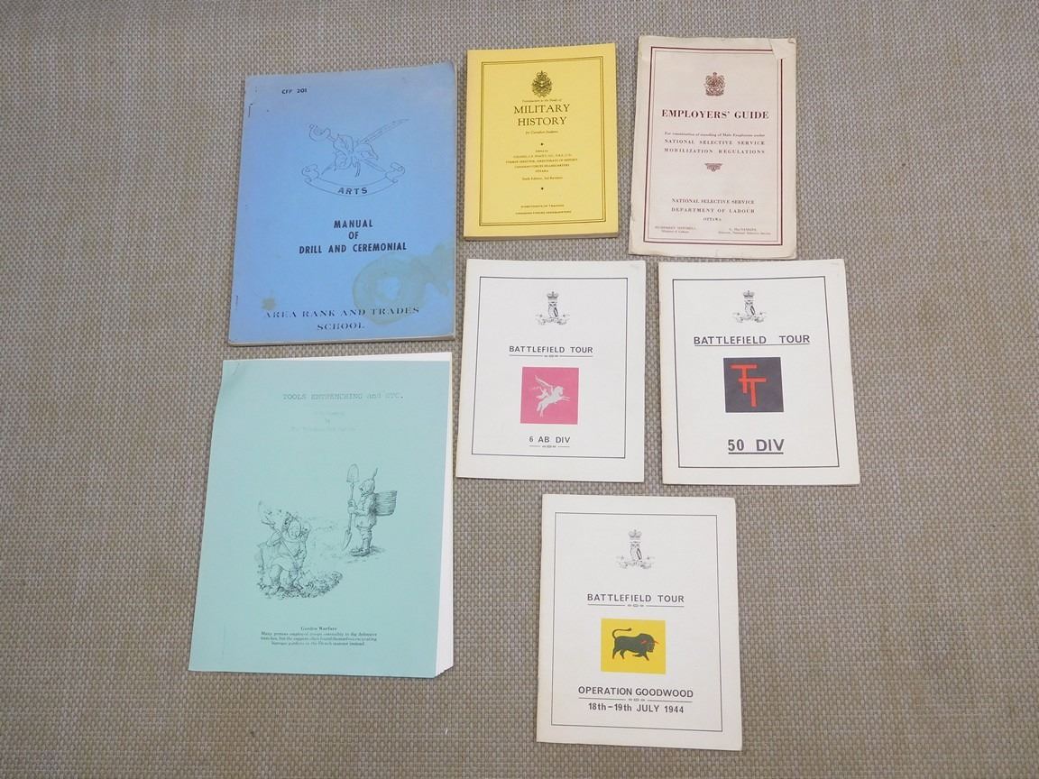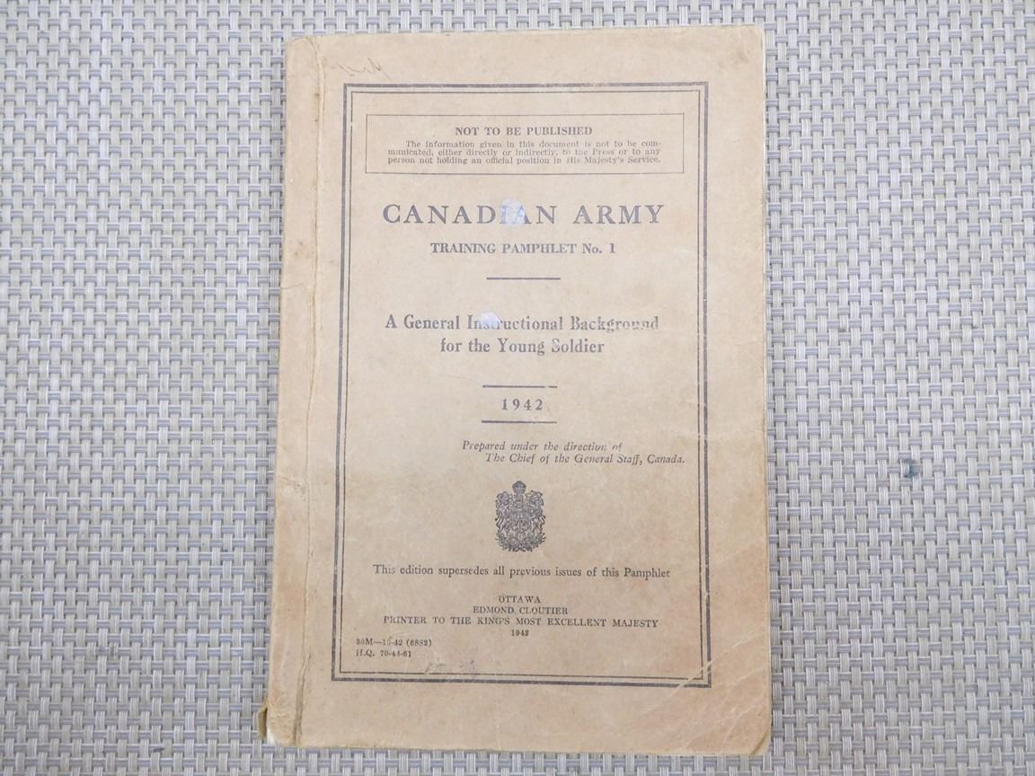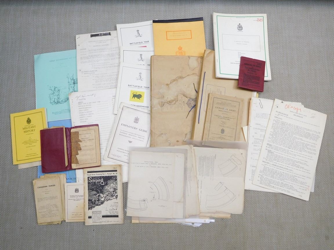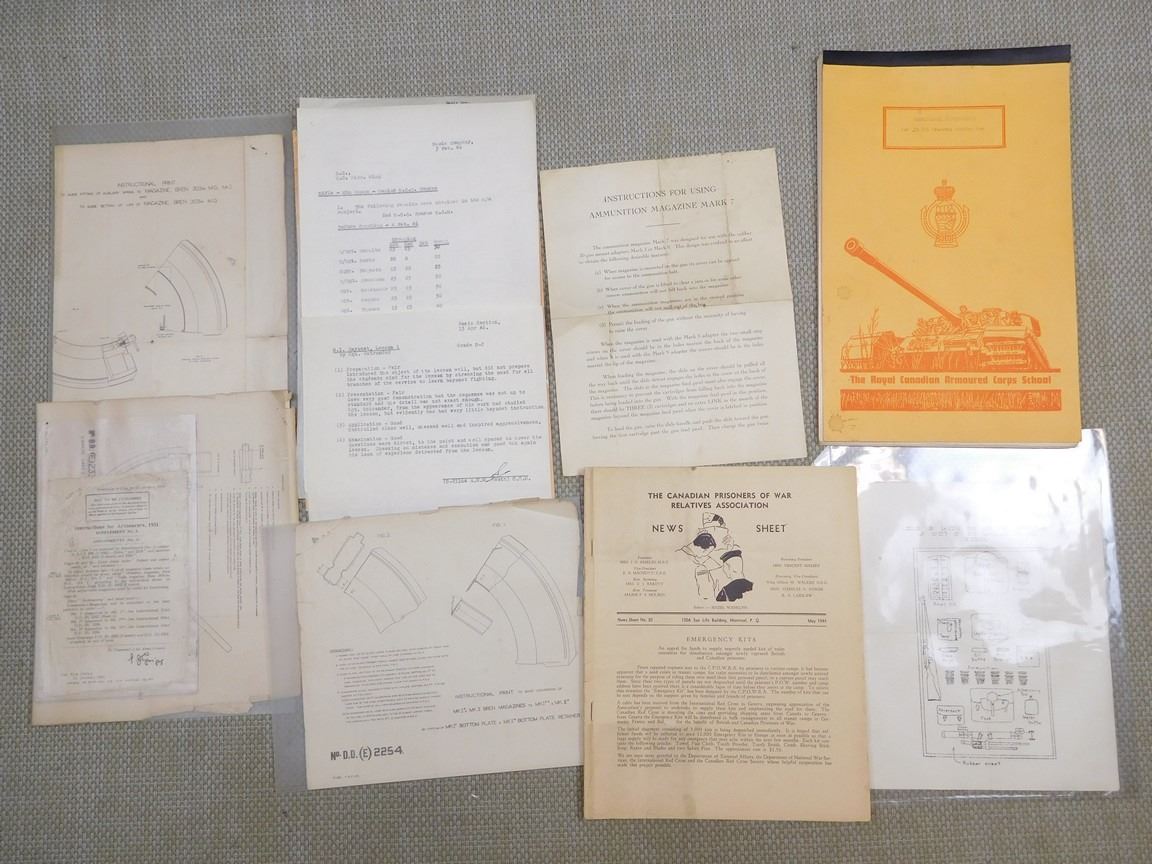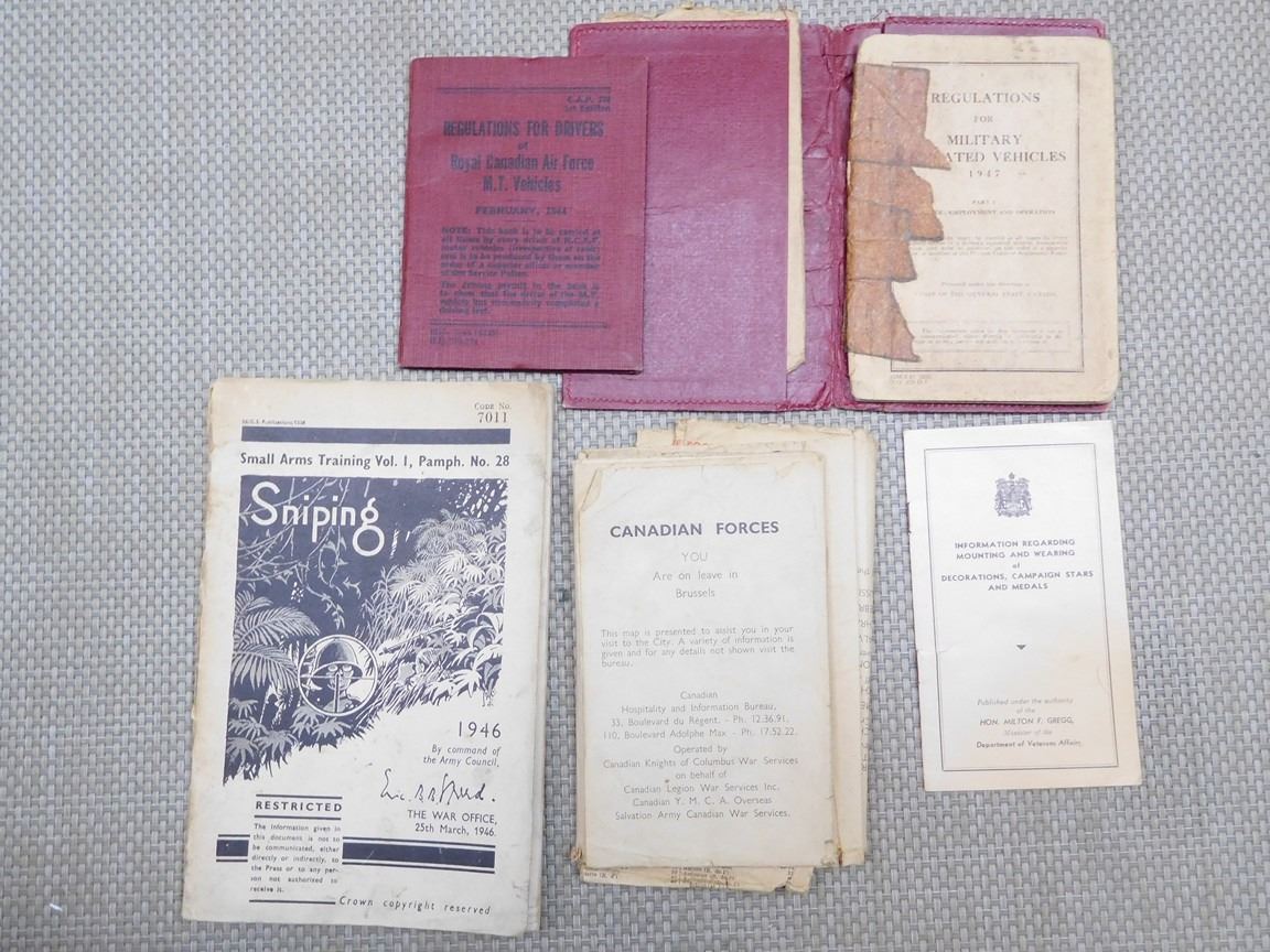 INCLUDES PHOTOCOPIES AND ORIGINALS: CANADIAN SERVICE RIFLE PROVISIONAL INSTRUCTIONS FOR .30 CAL BROWNING MACHINE GUN, SMALL ARMS TRAINING - SNIPING, REGULATIONS FOR DRIVERS OF R.C.A.F. M. T. VEHICULES FEB 1944, CANADIAN SIGNAL TRAINING CENTER DRESS REGULATIONS, THE CANADIAN PRISONERS OF WAR RELATIVES ASSOCIATION NEWS SHEET MAY 1944, CANADIAN ARMY TRAINING PAMPHLET NO. 1 1942, AND MORE!
