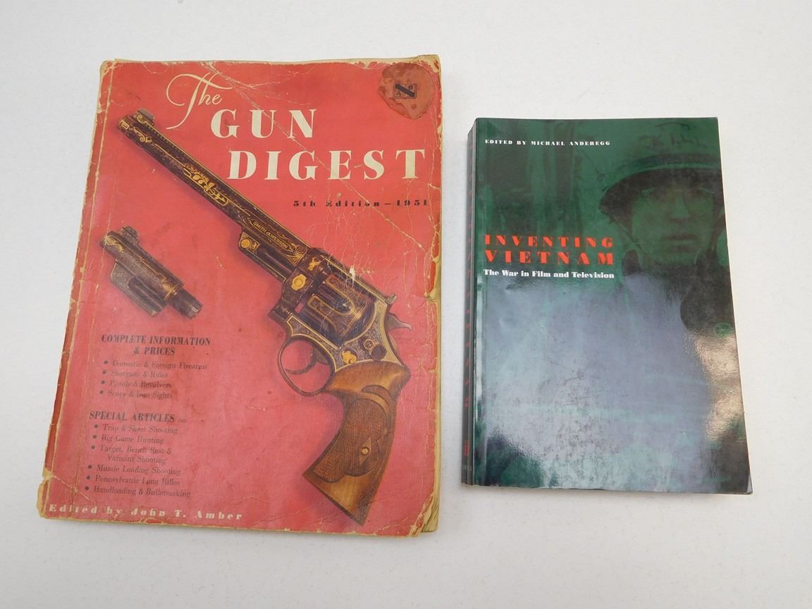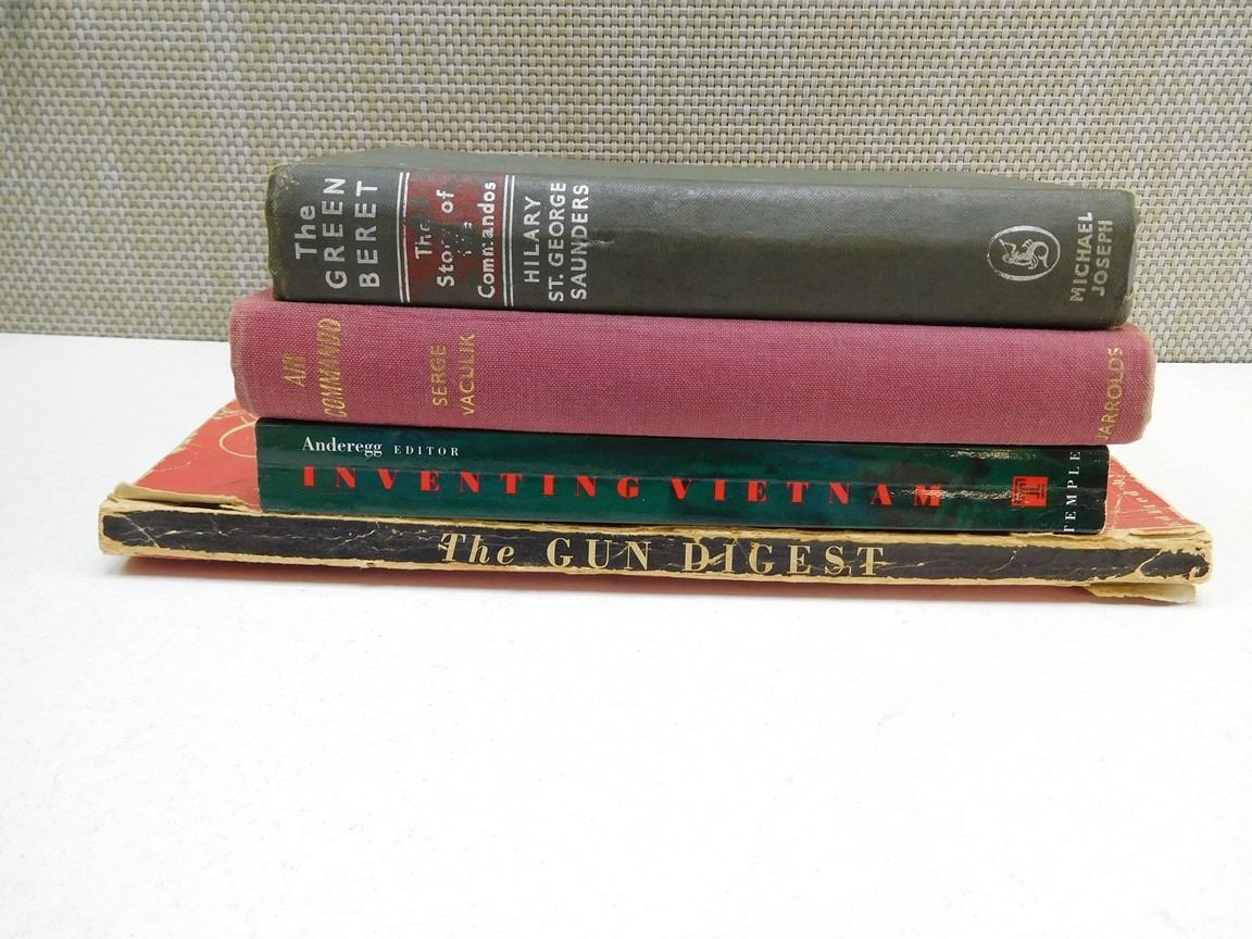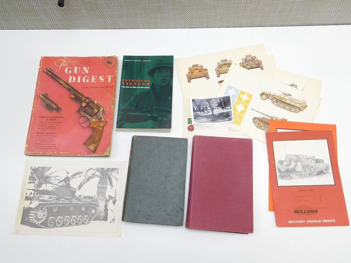 (1) FOLDER OF TANK PHOTOS & MILITARY VEHICULE PRINTS, (1) GUN DIGEST MAGAZINE, (1) AIR COMMANDO , (1) THE GREEN BERET, (1) INVENTING VIETNAM, LOT OF 5