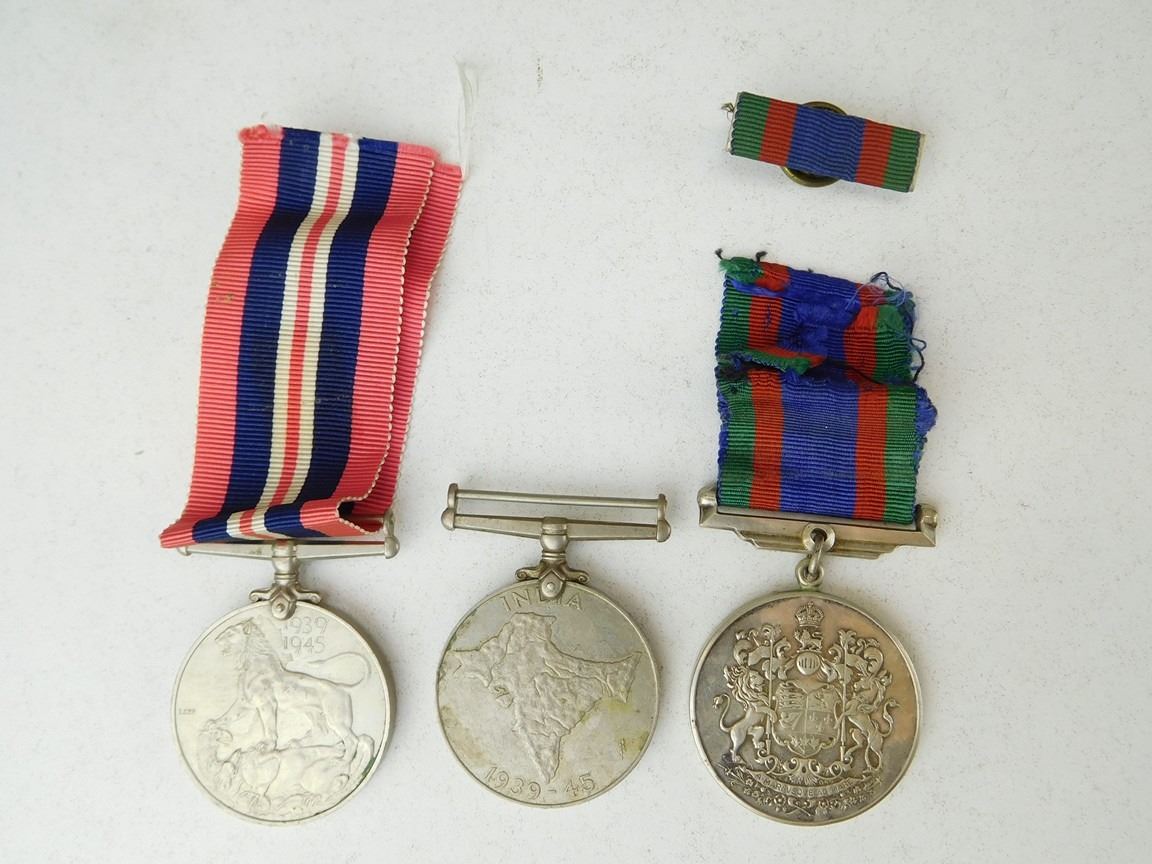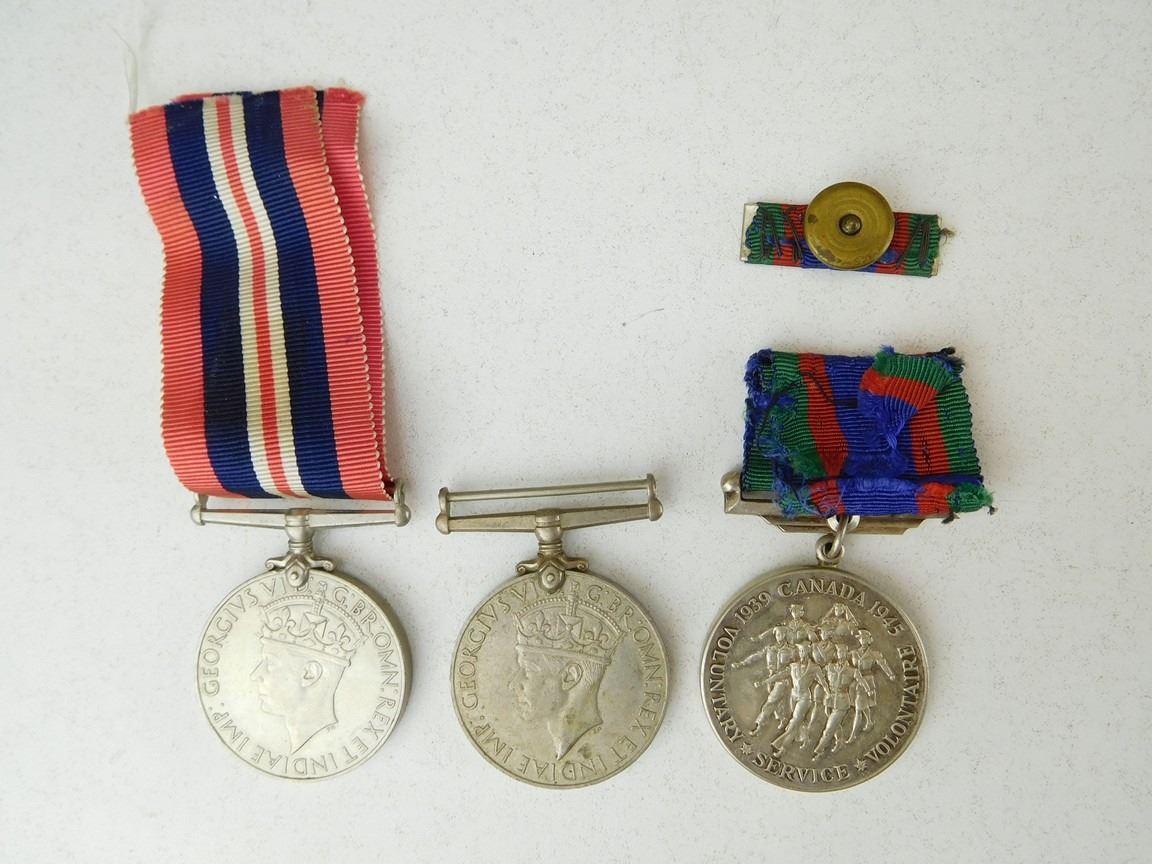 CANADIAN VOLUNTARY SERVICE MEDAL WITH RIBBON & RIBBON BAR, INDIA SERVICE MEDAL WITHOUT RIBBON, WAR MEDAL WITH RIBBON