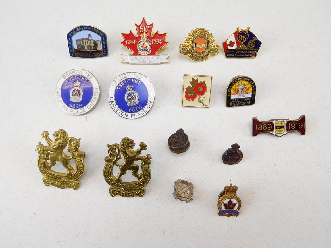(2) VETERANS GUARD OF CANADA COLLAR BADGES LUG BACK NO PIN, ASSORTED LGION BRANCH PINS