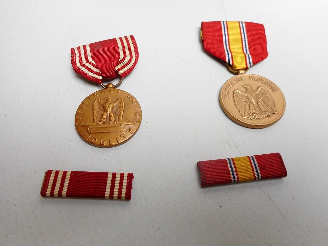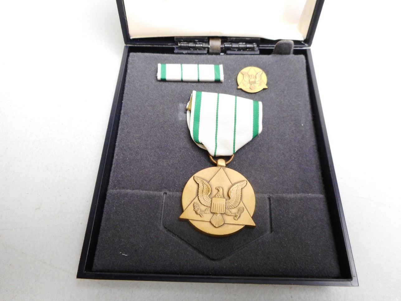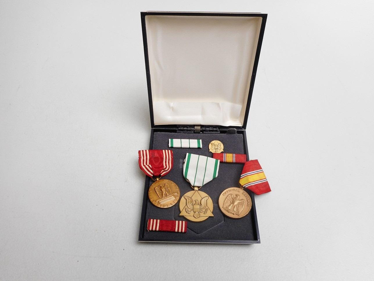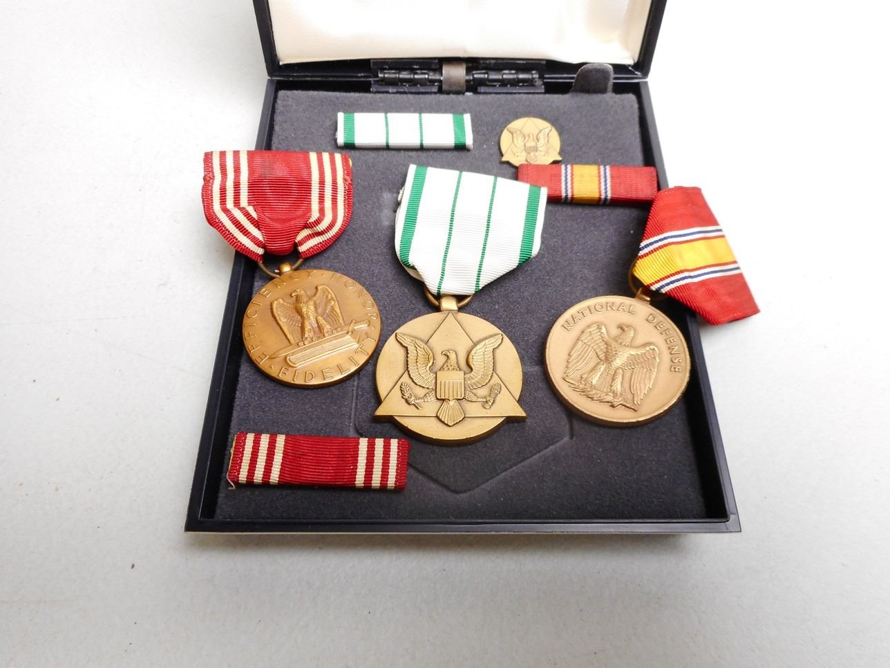 (1) FOR GOOD CONDUCT, (1) NATIONAL DEFENSE, (1) COMMANDER'S AWARD FR PUBLIC SERVICE, ALL WITH RIBBON BARS, IN MEDAL CASE