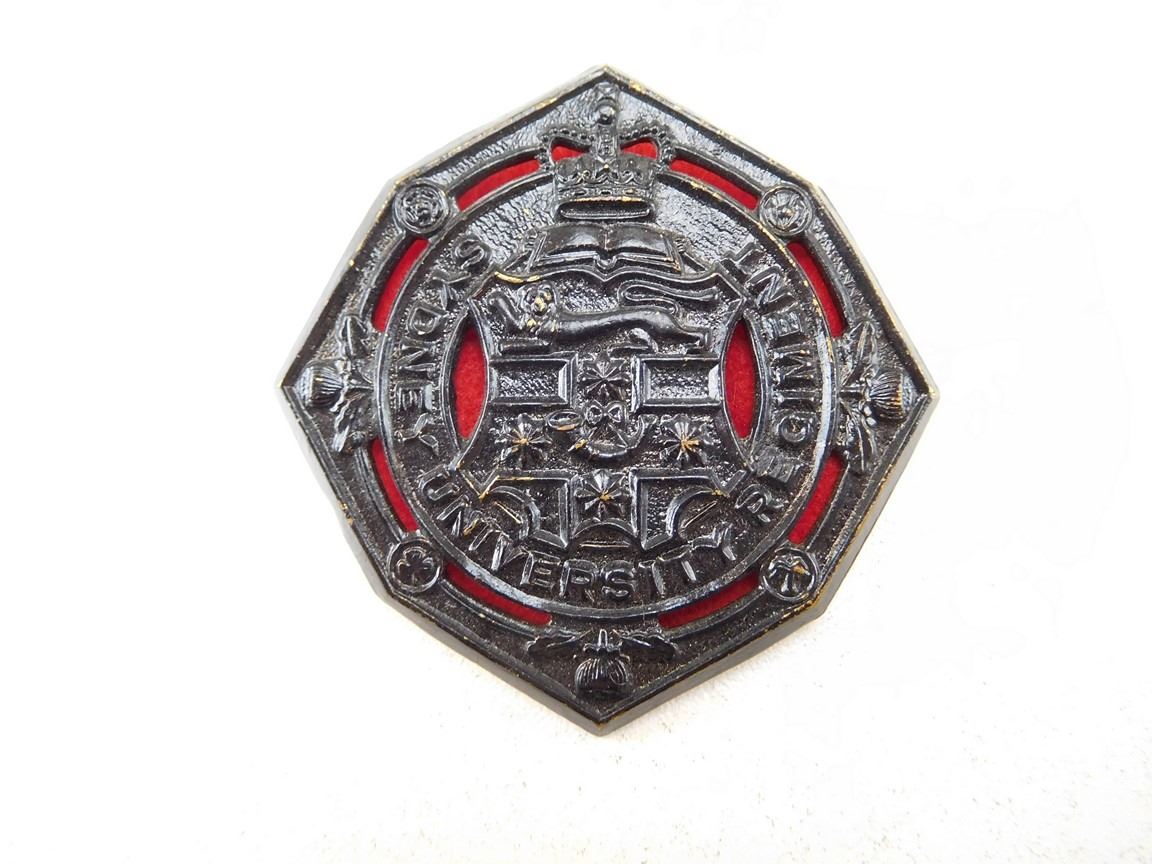 SYDNEY UNIVERSITY REGIMENT, RED VELVET BACKING, PIN BACK WITHOUT CAPS