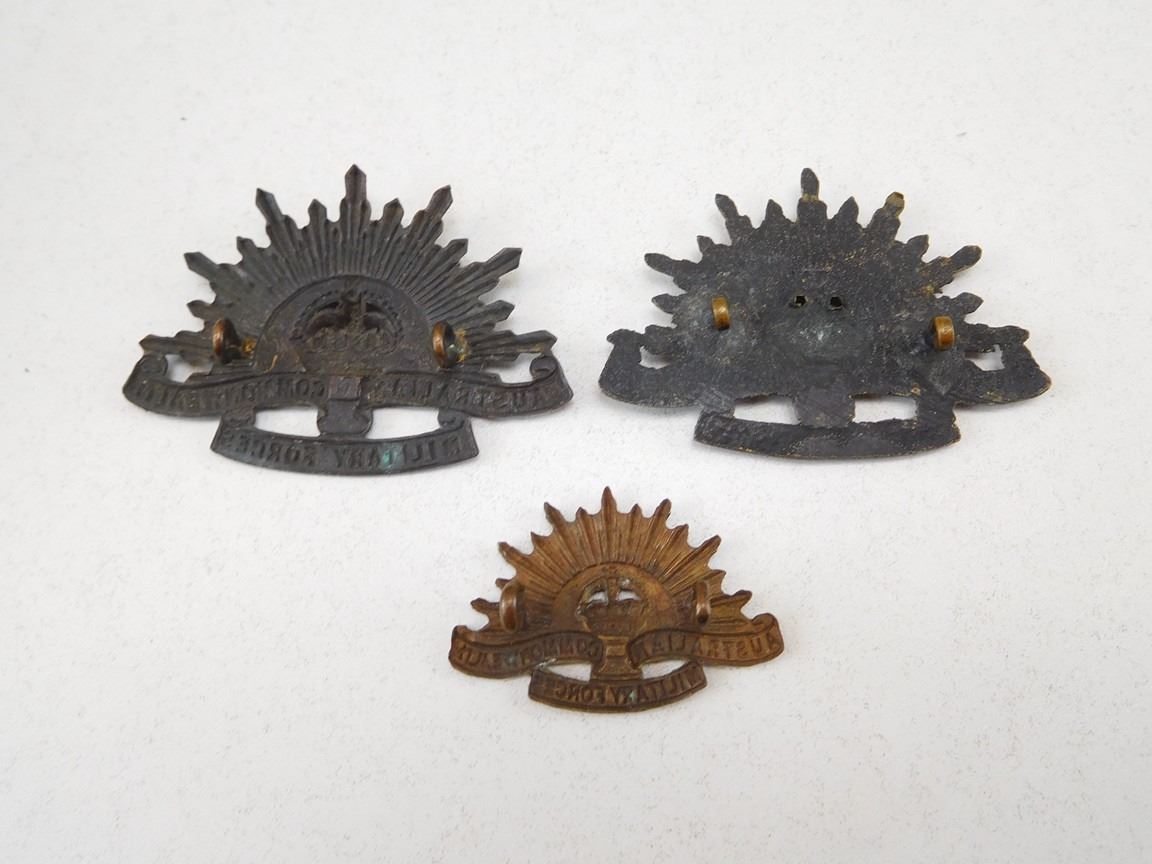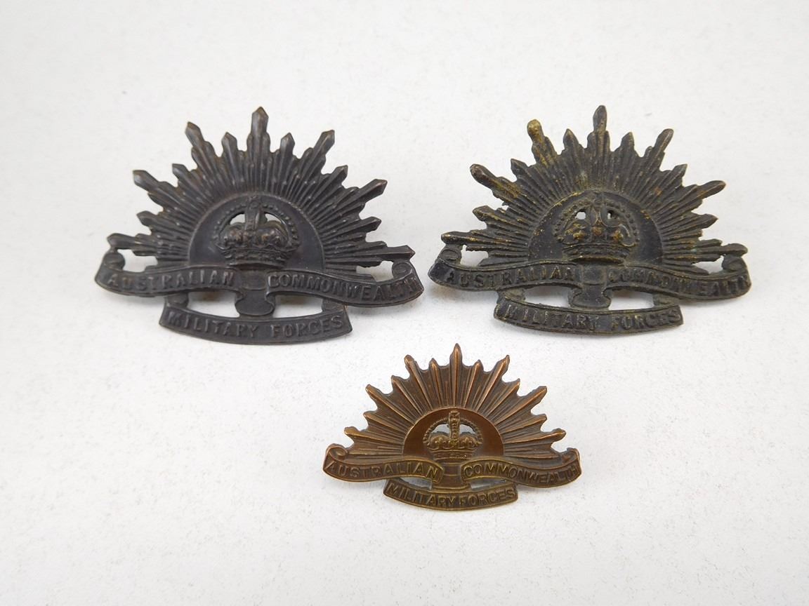 AUSTRALIAN COMMONWEALTH MILITARY FORCES, LUG BACK NO PIN, LOT OF 3