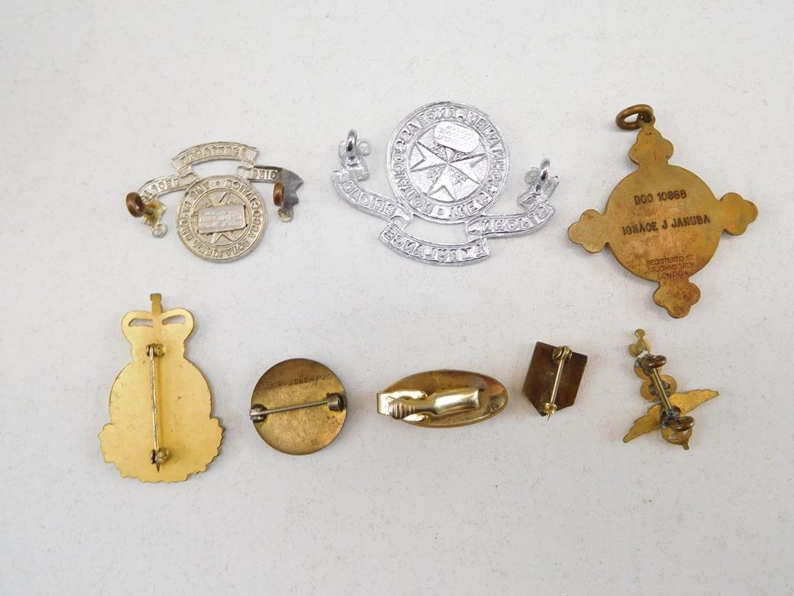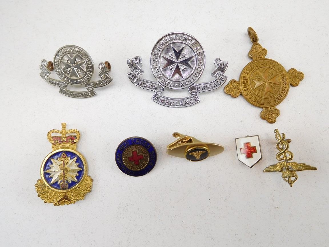 (1) EACH OF ST. JOHN AMBULANCE BRIGADE CAP & COLLAR BADGE, (1) THE ST. JOHN AMBULANCE ASSOCIATION MEDAL REVERSE:DOC 10988 IGNACE J JANUBA, &ASSORTED RED CROSS PINS, ROYAL MEDICAL CORPS PINS & COLLAR BADGE