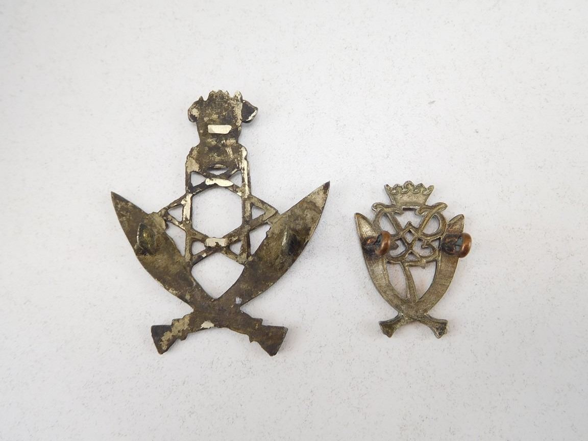 (1) 7TH DUKE OF EDINBUROUGH'S OWN GURKHA RIFLES LUG BACK NO PIN, (1) UNKNOWN INDIAN ARMY LUG BACK NO PIN, LOT OF 2