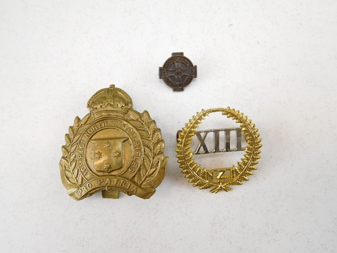 10TH REGIMENT NORTH OTACO RIFLES, SLIDE FASTENER, BOTTOM IS BROKEN, 13TH REINFORCEMENTS CAP BADGE