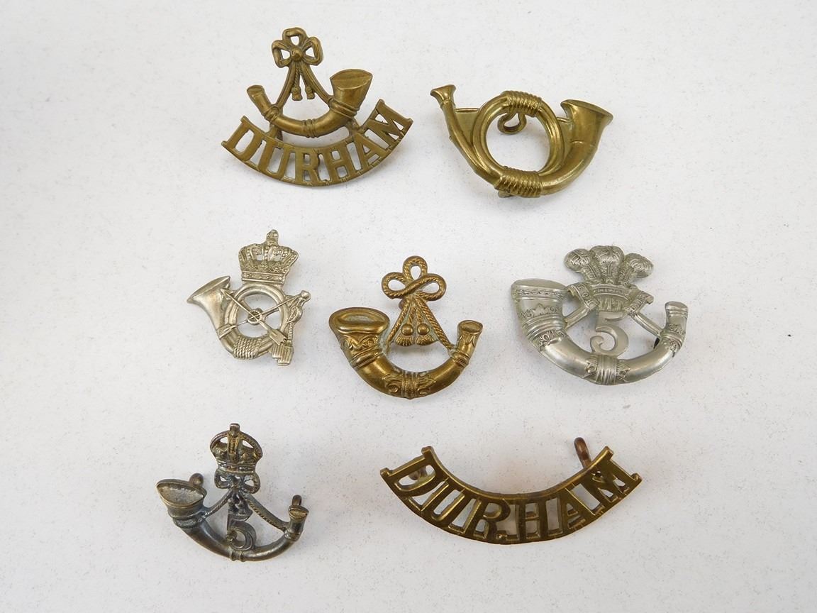 INCLUDES DURHAM SHOULDER TITLES AND LIGHT INFANTRY HAT BADGES LUG BACKS NO PINS